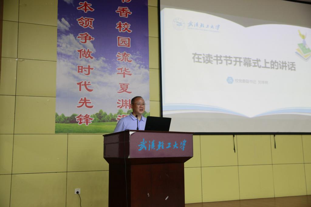 刘丰林副书记在开幕式上与全体同学分享了自己多年读书的体会,并寄语大家:一是要勤读书,坚定理想,勇担复兴大任;二是要真读书,练就过硬本领,争做时代先锋;三是要读好书,提升自我境界,实现人生价值。他强调,读书可以励志,可以明理,领略历史风云,帮助我们增强底蕴,明辨是非,当代大学生要把读书作为一种生活态度,与书为伴,多读马克思主义经典与中华传统文化经典,不断地积累知识,知行合一,增长青春搏击的能量与本领,为自身成长奠定坚实的基础。