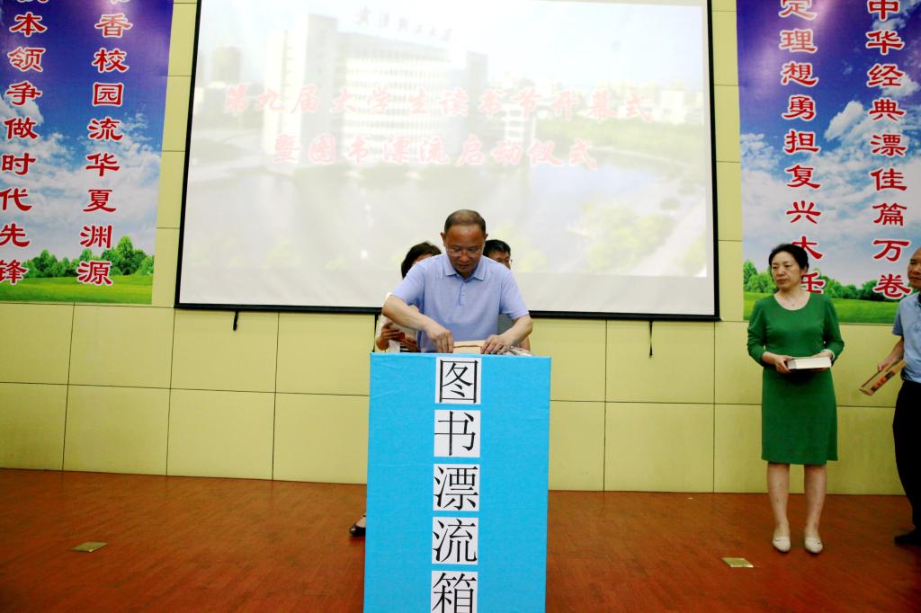 本报讯(实习记者 张乐)5月17日下午,学校第九届大学生读书节开幕式暨图书漂流启动仪式在金银湖校区图书馆三楼会议室成功举行。校党委副书记刘丰林,组织部、宣传部、学工处、工会、校团委、研究生处、图书馆及机械学院负责人出席了开幕式。