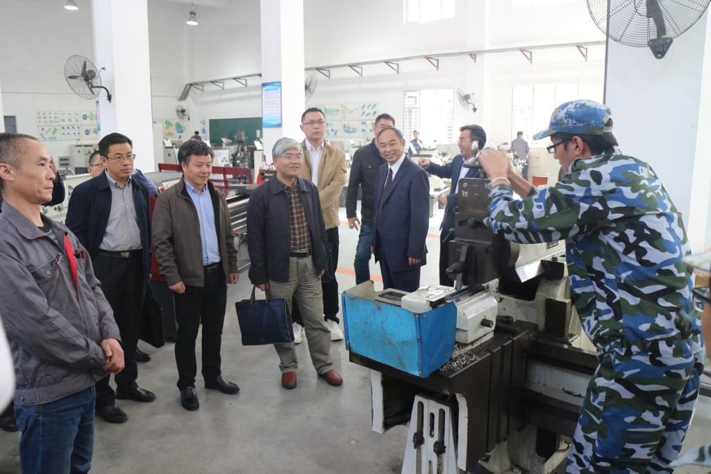 在赵险峰老师引导下,专家一行首先参观了机械工程实习实训中心的铸造、焊接、钳工、车削、 铣削、刨削、磨削等6种传统加工工艺,看着同学们全神贯注、认真操作,专家表示:“学习是永无止境的,希望同学们能在这些老师傅手上得到真传,学到书本上没有的知识”;然后参观了线切割、数控铣、数控车等3种现代加工设备,“现在的产品加工基本上全部由这些机器来完成,已经完全可以实现自动化。”赵险峰老师介绍到。接着来到了孙亮波老师领导的“创客空间”展览室,里面陈列着学院历届大学生在机械创新与设计等国家级比赛中获奖的产品。最后。在尹芳老师引导并解说下,专家一行又参观了机械工程实验教学中心的机器人研究室、材料力学和机械原理相关实验室等。
