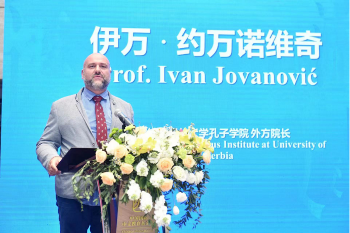 活动上,中国国际中文教育基金会理事长杨卫为两校颁授“塞尔维亚尼什大学孔子学院”铭牌。