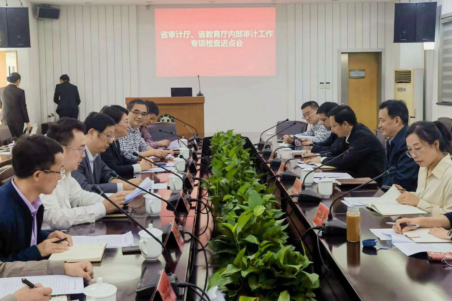 10月11日,专项检查进点会在会议中心举行。校长邢卫红,省审计厅内审指导监督处处长徐建清、省教育厅监督与审计处处长吴仁林、审计厅教育厅联合检查组成员出席会议,学校财务处、国资处、基建处等部门负责人及审计处全体人员参加会议。会议由审计处处长彭绍进主持。