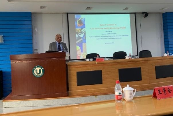 穆夫提从新型交叉学科“土木电子工程学”(Civionics Engineering)的名称是由“土木”(Civil)与“电子”(Electronics)结合而成谈起,介绍了加拿大“新型材料与智慧传感研究网络”(ISIS)的创立及土木电子工程学的发展。通过与加拿大多所高校和科研单位的合作研究,他成功地对加拿大多个桥梁、大坝等工程项目开展了基于土木电子工程学的结构健康监测,这些成功的案例说明了土木电子工程学在结构健康监测中广泛的应用前景。穆夫提还分享了多年来在曼尼托巴大学设立相关研究生课程及培养人才的宝贵经验。