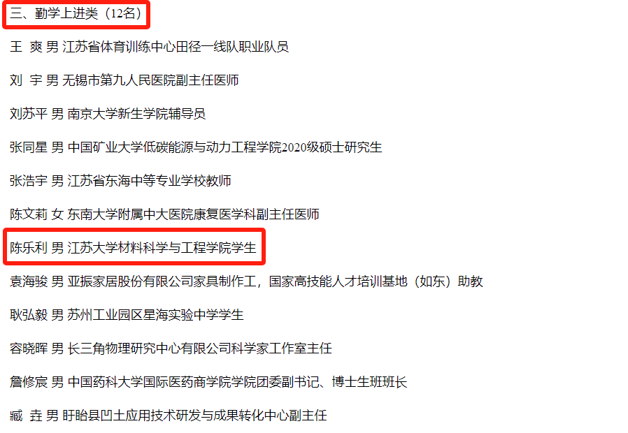 近日,江苏共青团公布了2023推选“我们身边的好青年”入选人员名单,beat365材料学院2021级博士生陈乐利入选勤学上进类好青年。
