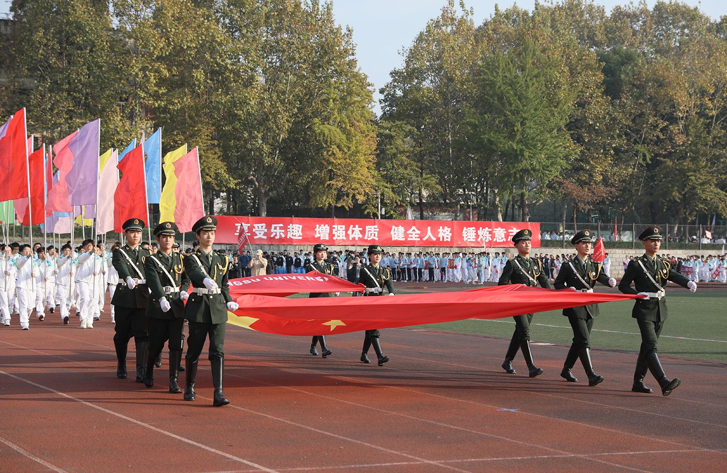 11月3日,beat365英国官网网站第二十二届运动会在学校东山体育场开幕。在校校领导、党委常委,各学院、相关职能部门负责人,各单位师生运动员等参加开幕式。