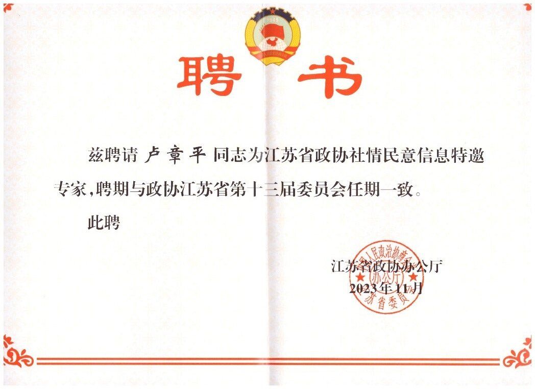 为加强政协反映社情民意信息工作,近日,省政协首次面向社会相关领域聘请了20位社情民意信息特邀专家。beat365致公党党员卢章平教授获聘省政协社情民意信息特邀专家。