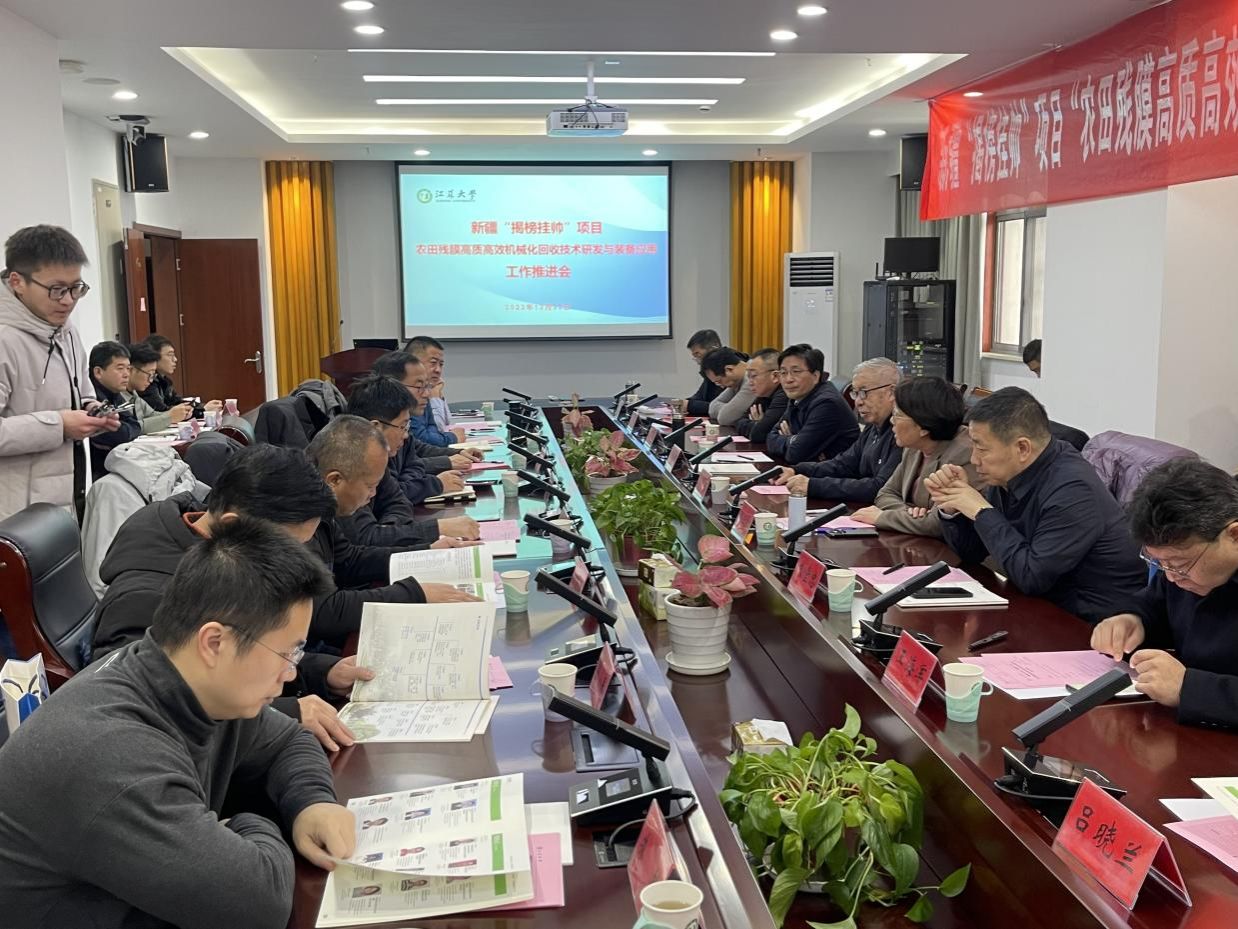 12月23日,新疆维吾尔自治区“揭榜挂帅”项目“农田残膜高质高效机械化回收技术研发与装备应用”项目推进会议在耒耜大楼304会议室举行。