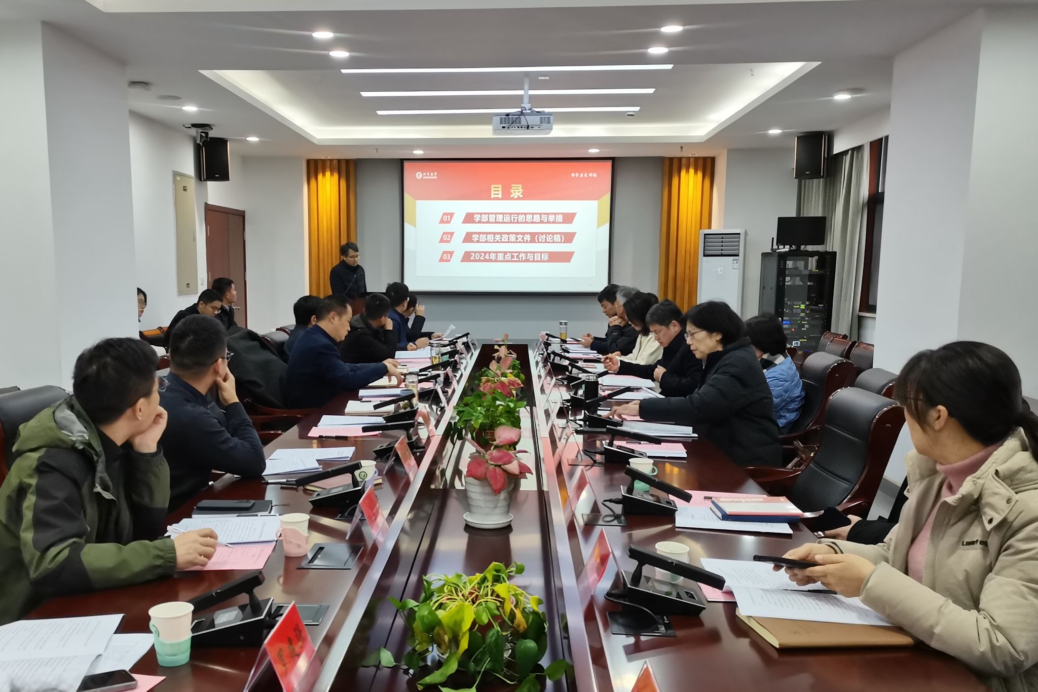 会上,学部执行主任徐立章从学部运行的思路与举措、机制体制改革政策文件、2024年工作目标与重点工作等三个方面作了详细汇报。管理委员会全体委员就学部运行进行了充分交流讨论,并提出建设性意见。