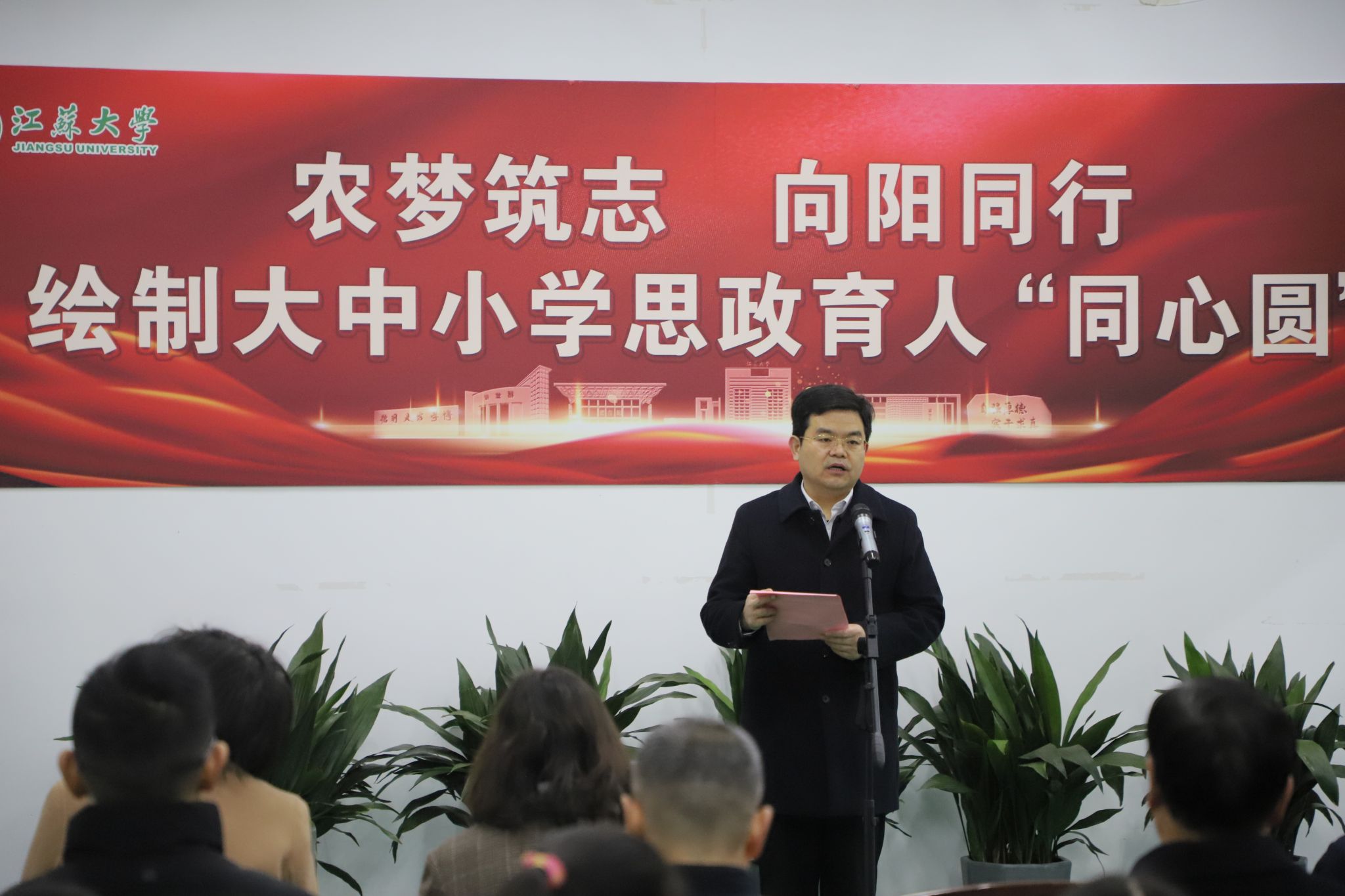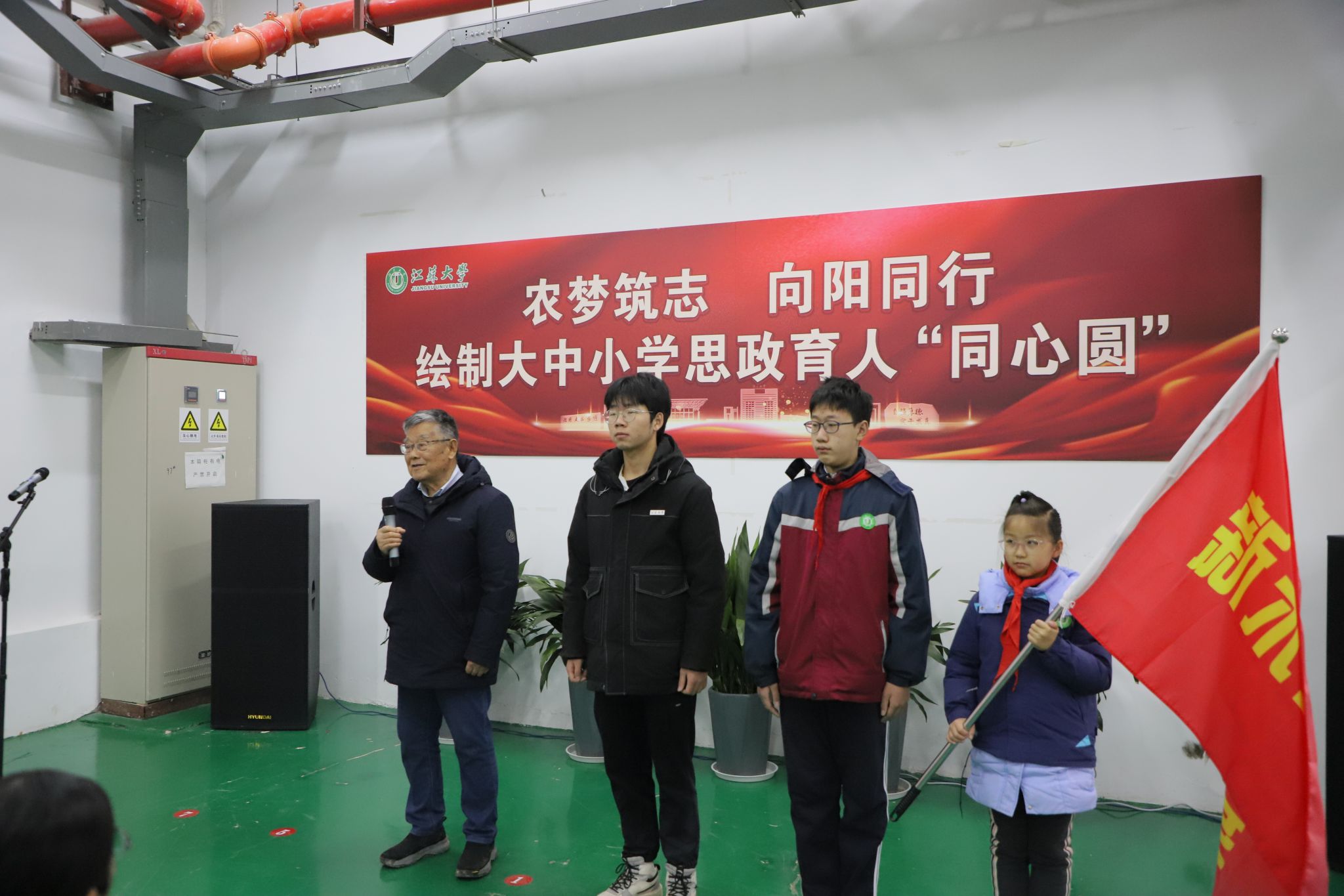 1月4日,由党委宣传部主办的“农梦筑志 向阳同行”绘制大中小学思政育人“同心圆”主题活动在耒耜大楼举行。“全国脱贫攻坚楷模”“时代楷模”赵亚夫,校党委书记李洪波,校党委常委、副校长李红,新华日报社镇江分社社长晏培娟,校党委常委、党委宣传部部长、党委统战部部长吴麟麟,以及镇江新区永兴农机机械化专业合作社、农业工程学院、马克思主义学院、思想政治工作研究院、beat365英国官网网站附属学校的师生代表参加活动。活动仪式由李红主持。