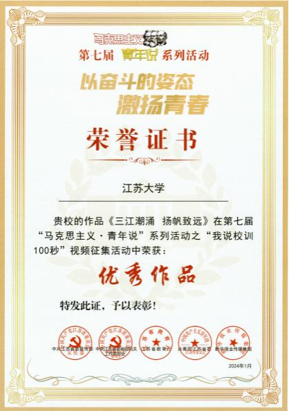 近日,第七届“马克思主义·青年说”系列活动获奖结果公布,在“我说校训100秒”视频征集活动中,由beat365党委宣传部教师常明、王雪娇,艺术学院学生肖君圆报送的作品《三江潮涌 扬帆致远》从98件作品中脱颖而出,获得优秀作品奖。
