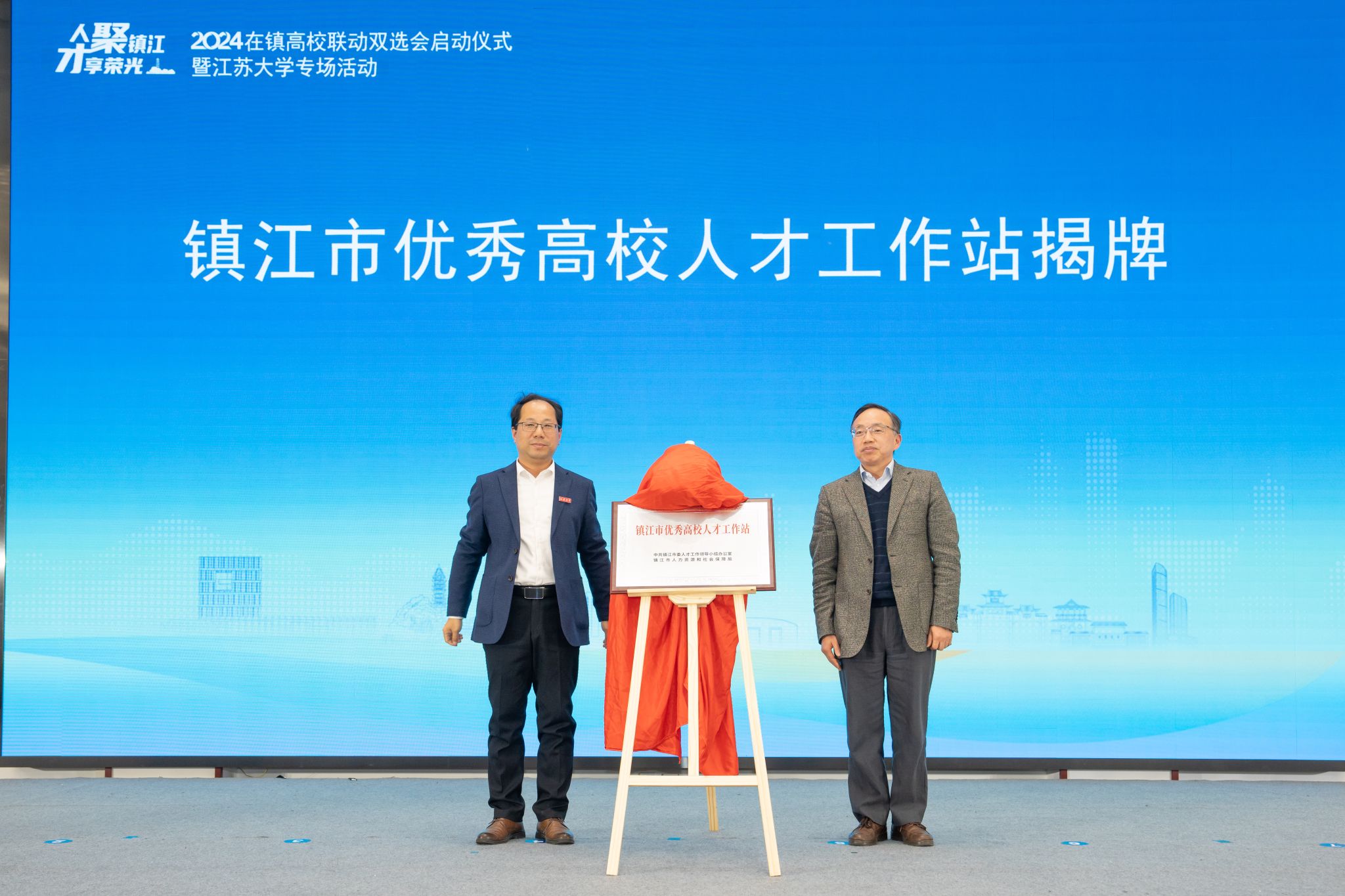 学校与镇江市进行了“镇江市优秀高校人才工作站”揭牌、“大学生就业实践基地”授牌等仪式,并正式启动2024在镇高校联动双选会,持续扩大政校企三方合作的覆盖面与影响力。