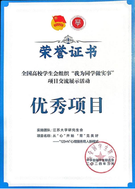 3月22日至24日,由共青团中央指导,全国学联主办,团贵州省委、贵州省学联、贵州师范大学承办的全国高校学生会组织“我为同学做实事”项目交流展示活动在贵州举办。校研究生会“从‘心’开始 ‘育’见美好——‘123+N’心理服务育人新模式”项目和医学院“学生会共绘中外同心圆 中外学生携手共建人类命运共同体”项目,从1724个高等院校的3581个项目中脱颖而出,参与全国展示交流,获评“优秀项目”。