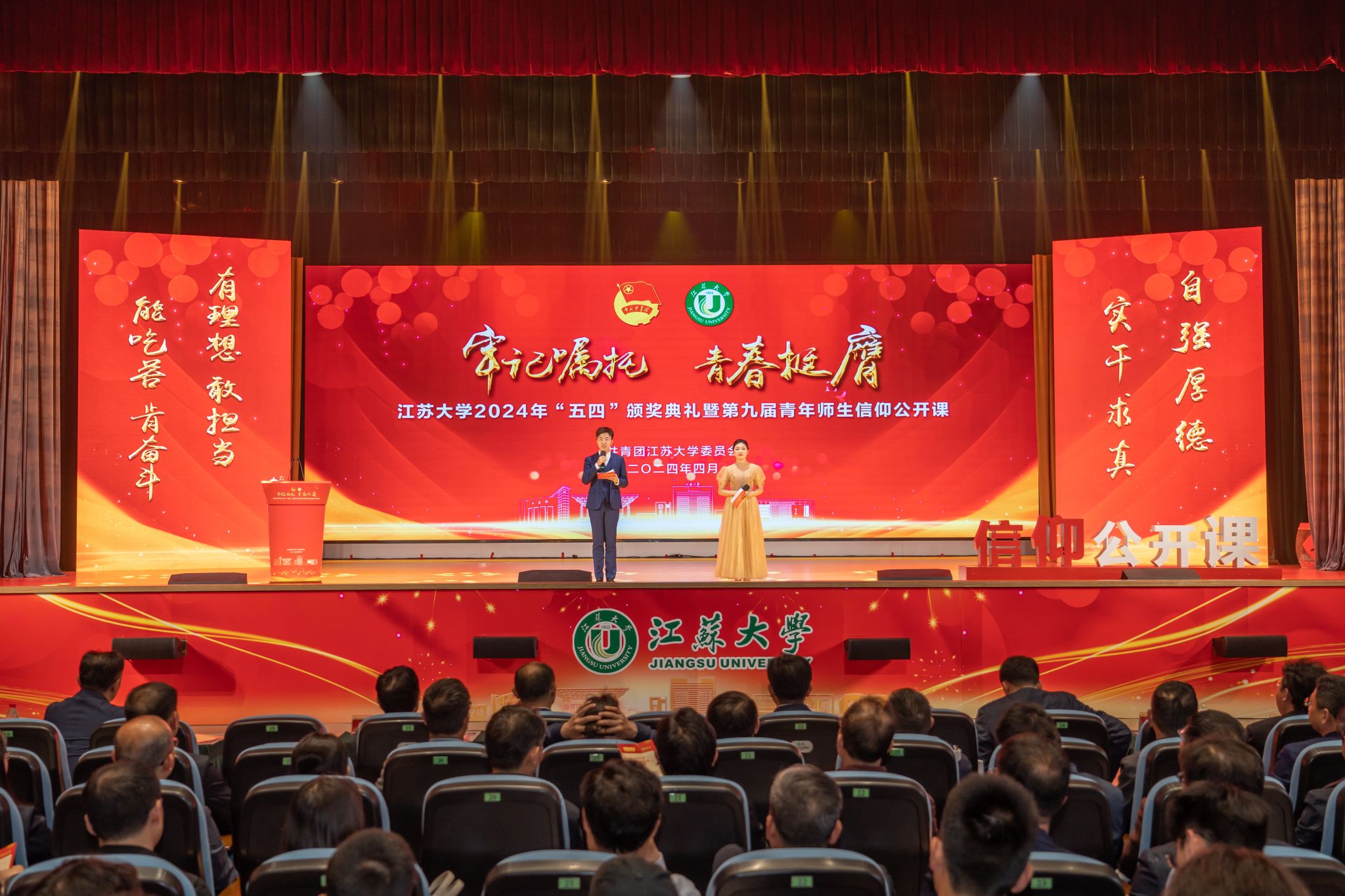 4月28日,“牢记嘱托 青春挺膺”——2024年beat365英国官网网站“五四”颁奖典礼暨第九届青年师生信仰公开课在大礼堂举行。