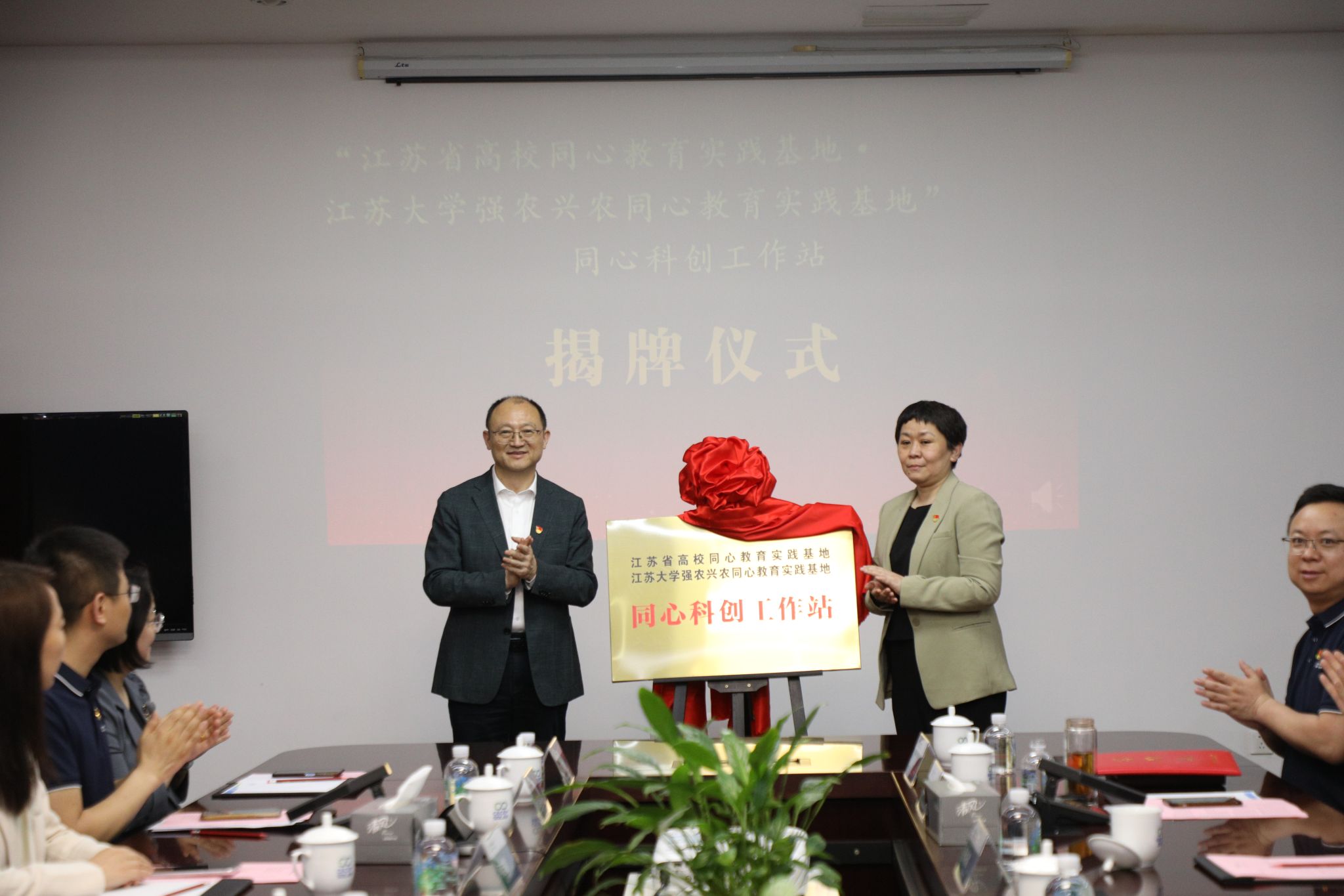 江苏省高校同心教育实践基地·beat365英国官网网站强农兴农同心教育实践基地与中节能太阳能科技(镇江)有限公司签订《校企共建协议书》,江苏省侨联新侨创新创业基地依托单位beat365英国官网网站能源研究院与中节能太阳能科技(镇江)有限公司签订《合作协议》,举办“beat365英国官网网站强农兴农同心教育实践基地同心科创工作站”“江苏省侨联新侨创新创业基地侨界专家工作室”揭牌仪式,并聘请5位留学归国专家、党外专家加入工作站、工作室。