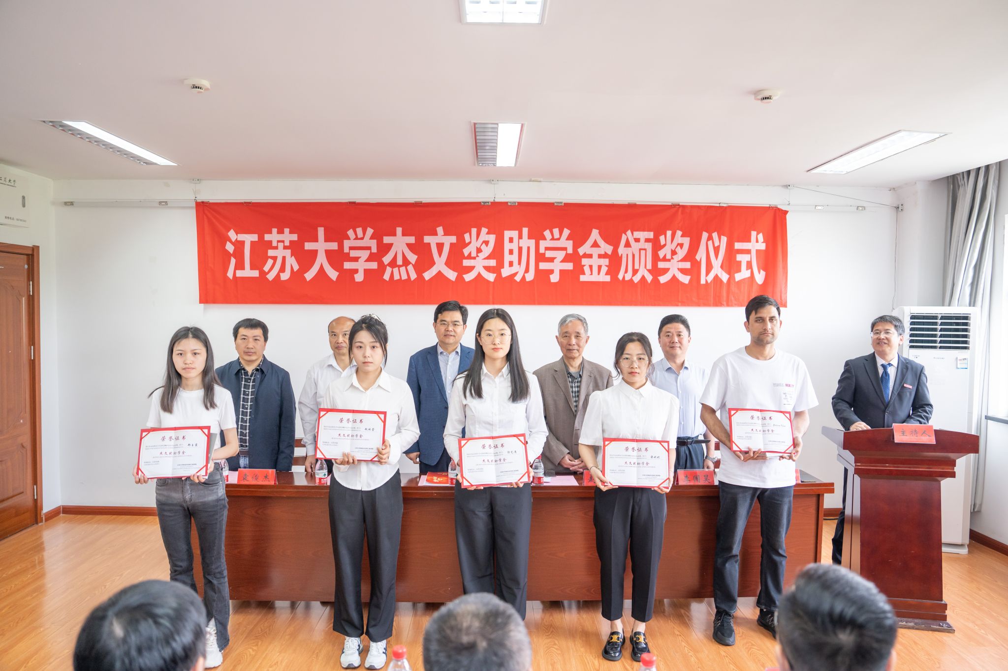 5月12日,2024年度beat365英国官网网站“杰文奖助学金”颁奖仪式在文华科研楼报告厅举行,10名研究生获得资助。校党委书记李洪波出席颁奖仪式并讲话,副校长邹小波,校友总会秘书长李国昊,研究生院、食品与生物工程学院相关负责人,捐资校友代表、教师代表和食品无损检测方向研究生等近50人参加会议。