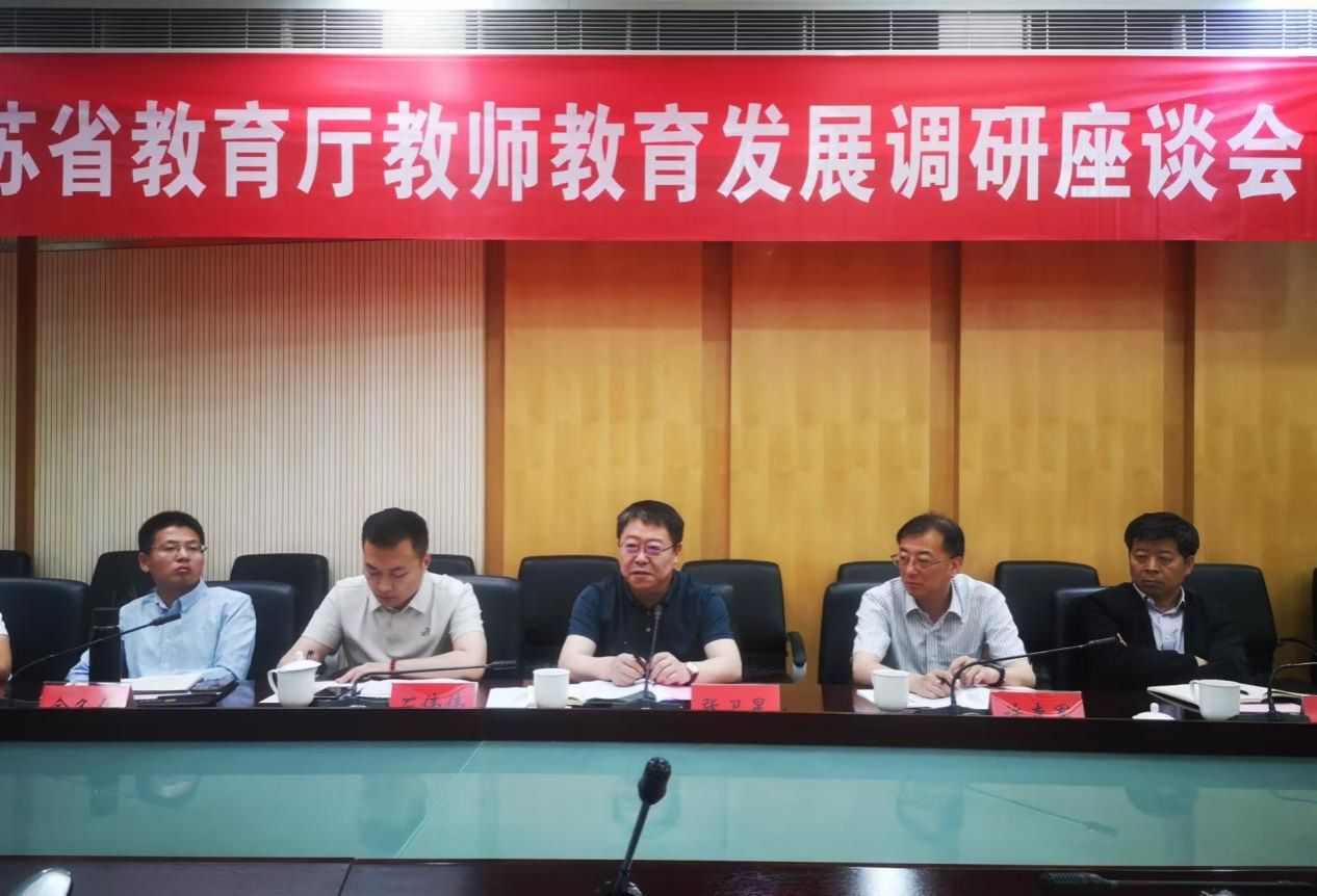 5月27日,江苏省教育厅教师教育发展调研座谈会在beat365举行。省教育厅教师工作处处长张卫星,三级调研员许李军,江苏省教师教育专业指导委员会秘书长冯建军,扬州大学副校长王承堂,beat365英国官网网站副校长邹小波出席座谈会。会议由张卫星主持。