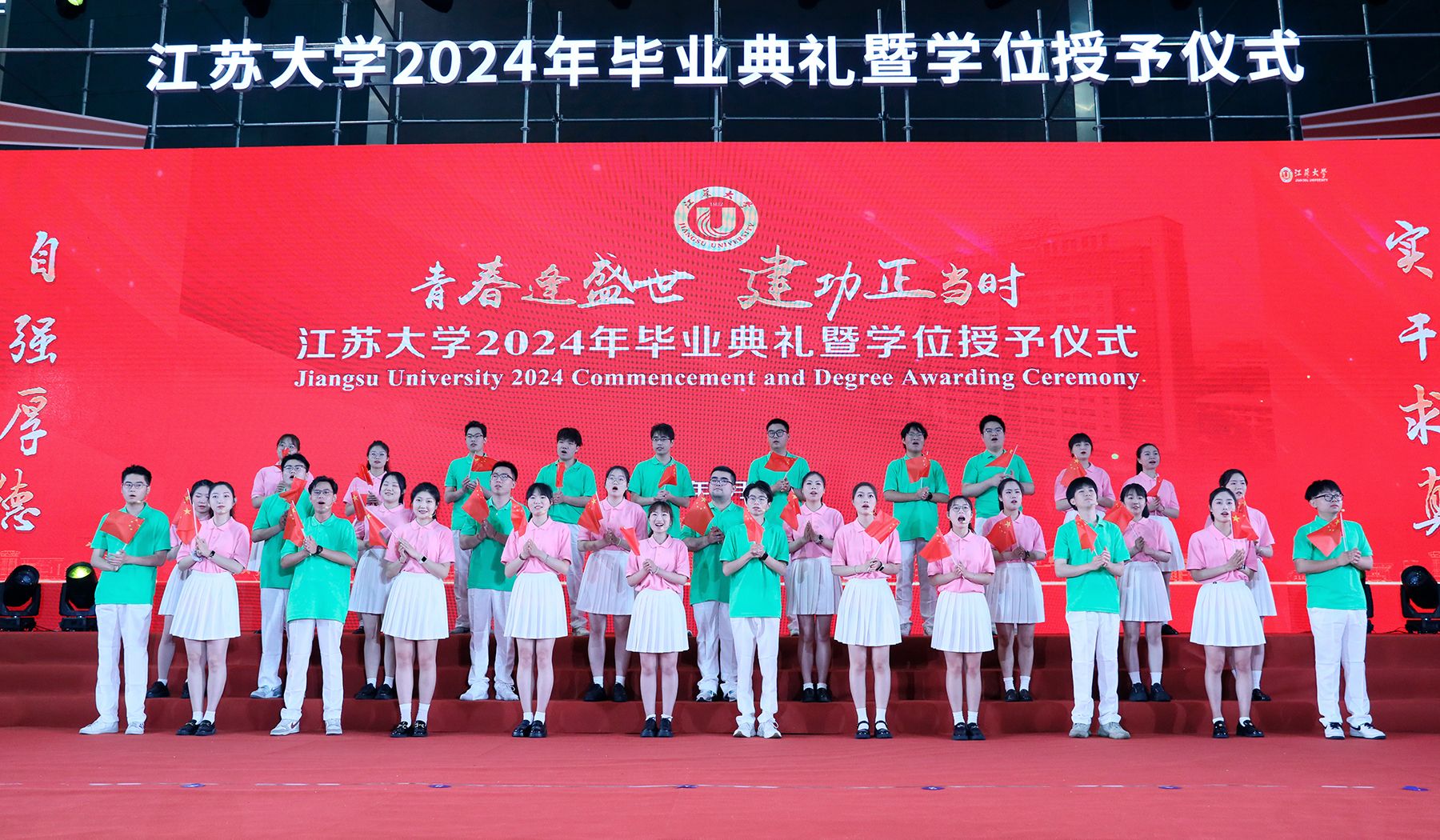 典礼上,师生代表表演了情景朗诵《奔跑的青春》和歌曲联唱《风起三江 逐梦启航》,祝福全体毕业生在新时代勇于建功立业,在新征程中续写青春故事。典礼最后,全场起立,共唱校歌《百年辉煌向未来》,表达对学校的深深眷恋和对未来的美好祝愿。