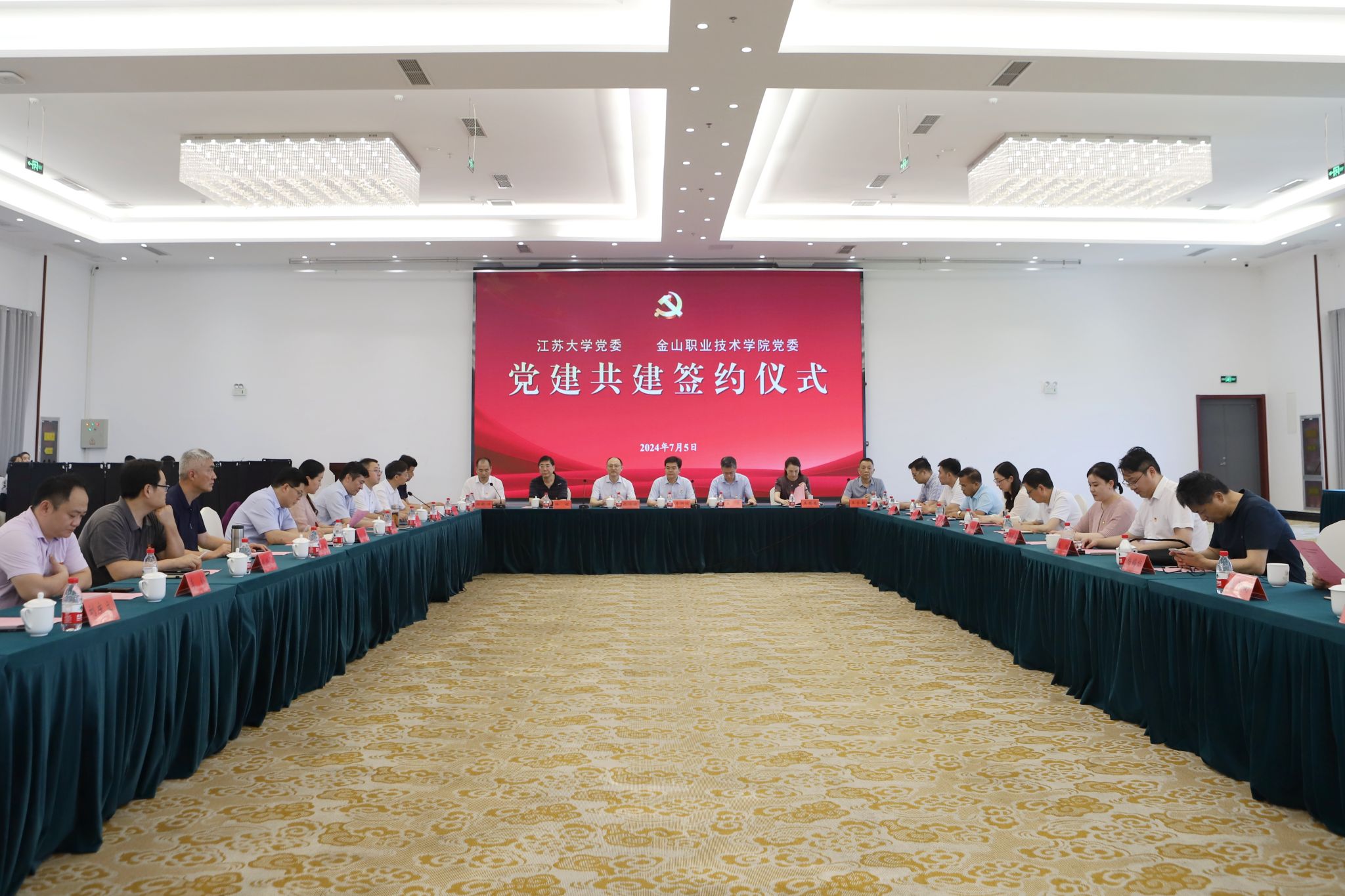 7月5日,beat365英国官网网站与金山职业技术学院党建共建签约仪式在青教公寓三江厅举行。校党委书记李洪波,金山职业技术学院党委书记徐铭,省委教育工委组织处、市委教育工委相关负责同志出席共建签约仪式,两校相关职能部门及院系负责人参加仪式。校党委常委、组织部部长杨敬江主持签约仪式。