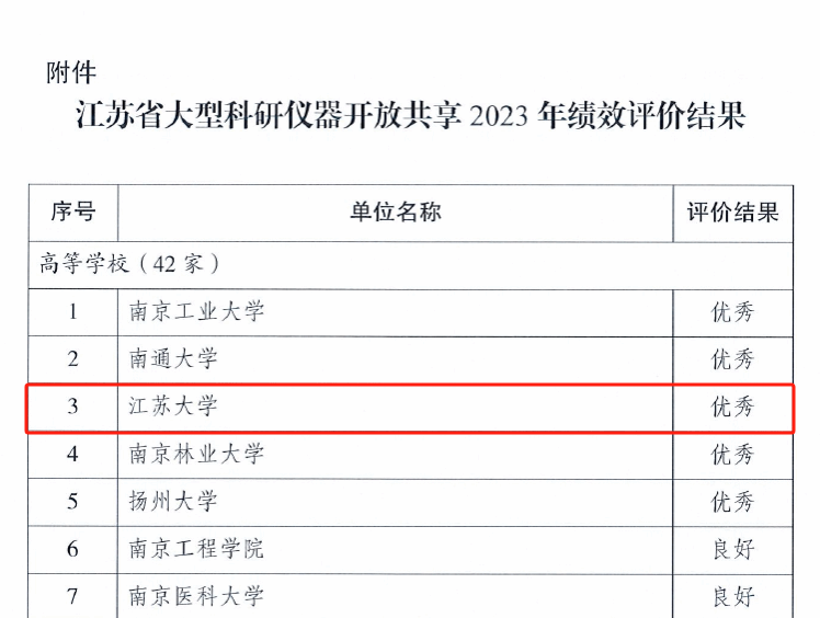 近日,江苏省科技资源统筹服务中心发文,公布2023年江苏省重大科研基础设施和大型科研仪器开放服务绩效评价结果。beat365连续四年获评优秀等次。