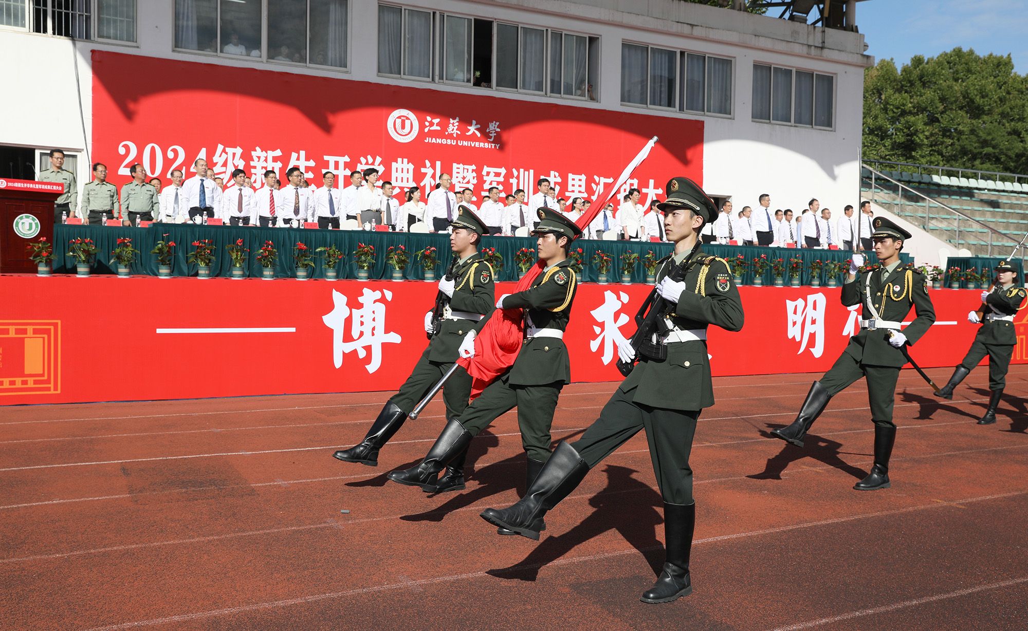 9月23日,beat365英国官网网站2024级新生开学典礼暨军训成果汇报大会在东山操场举行。