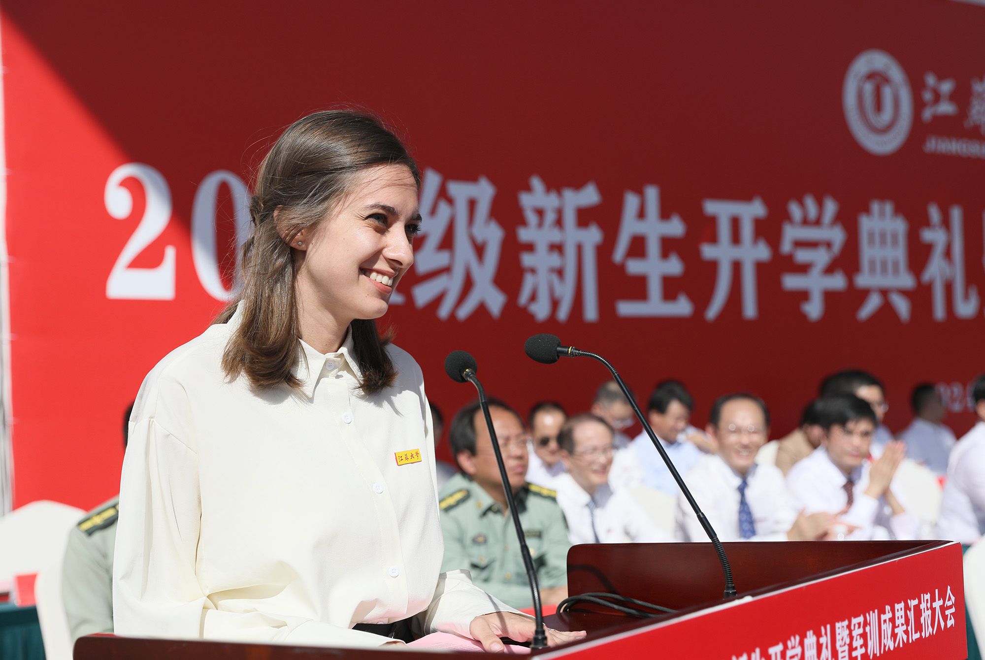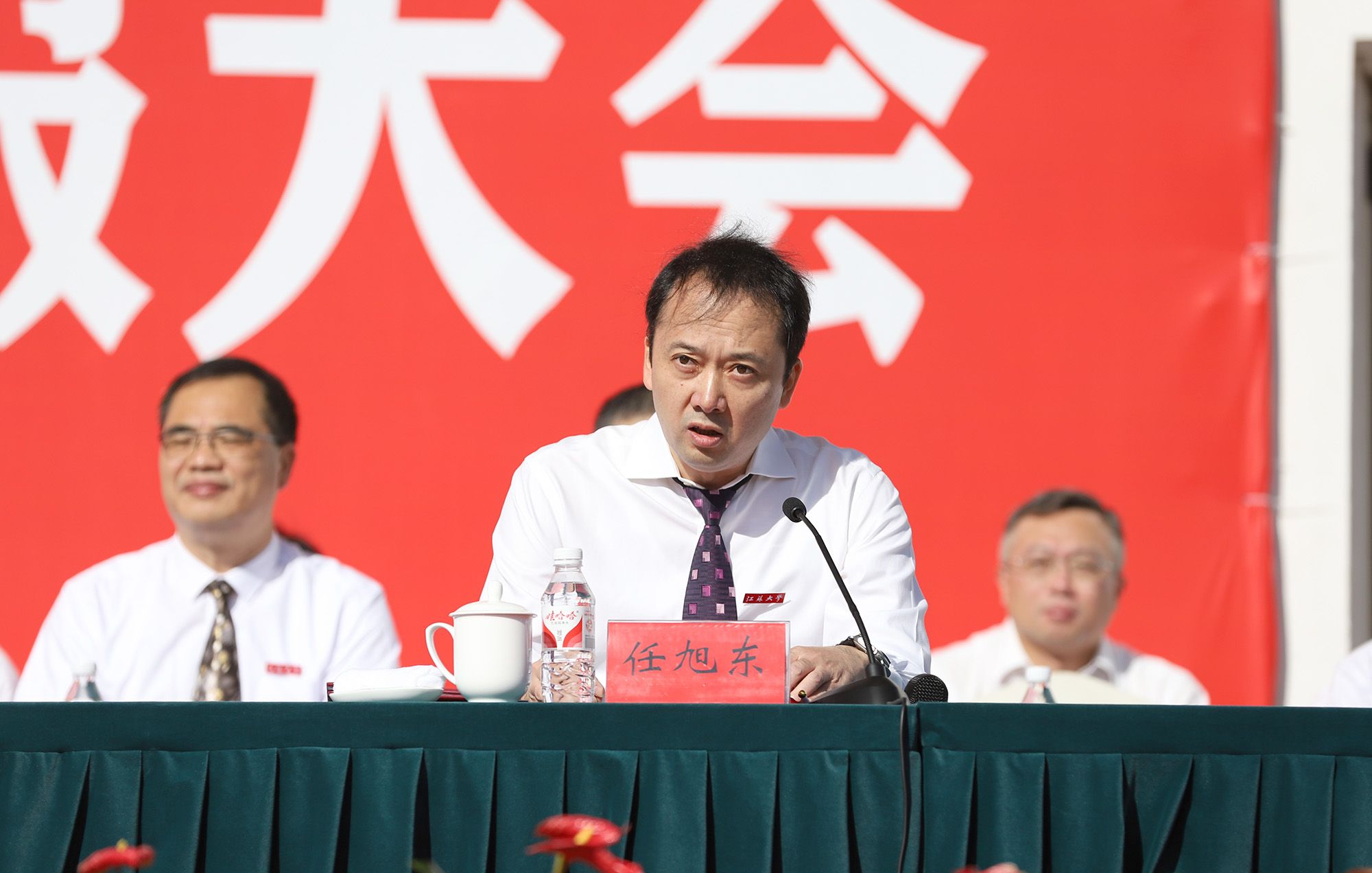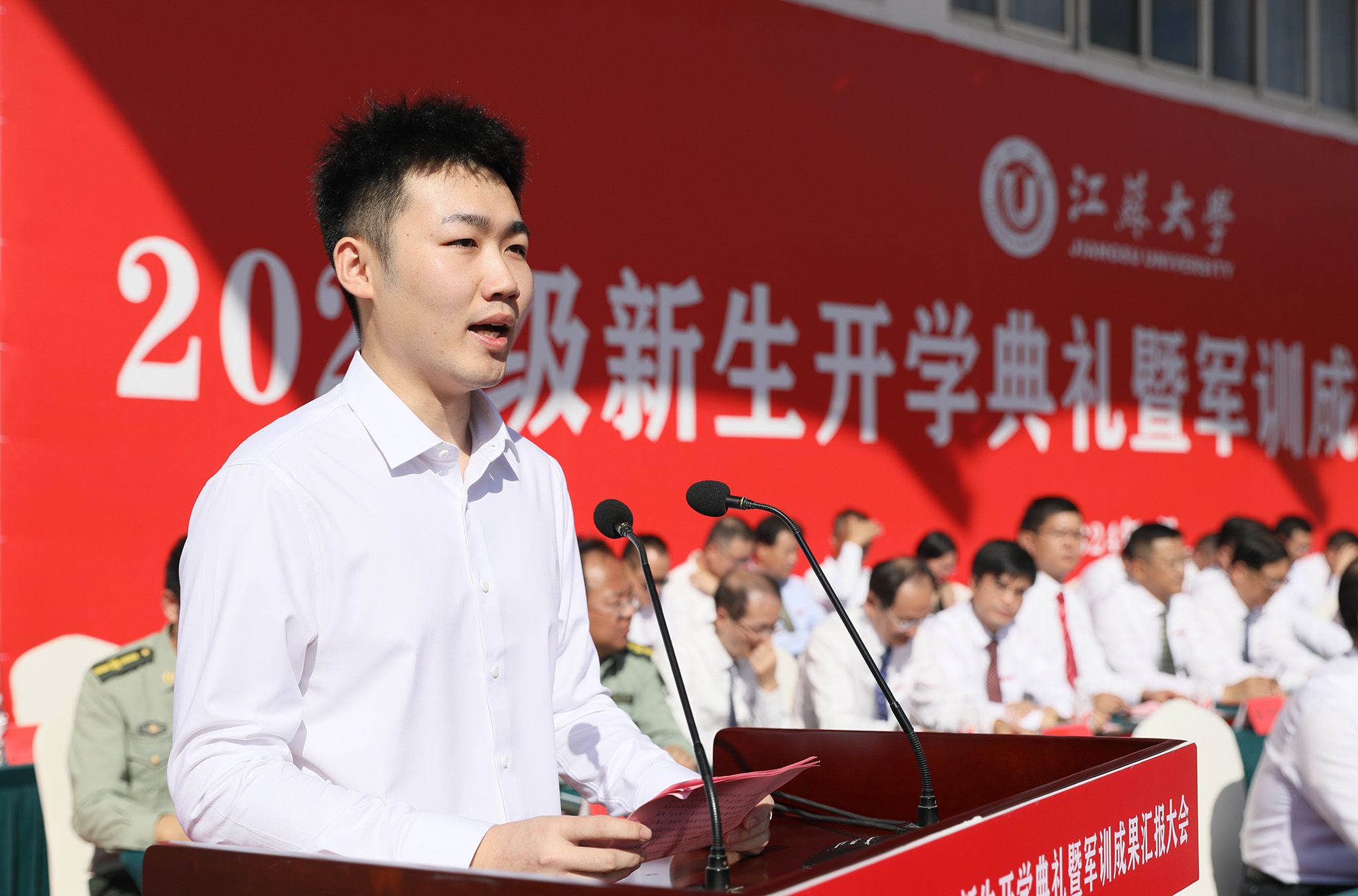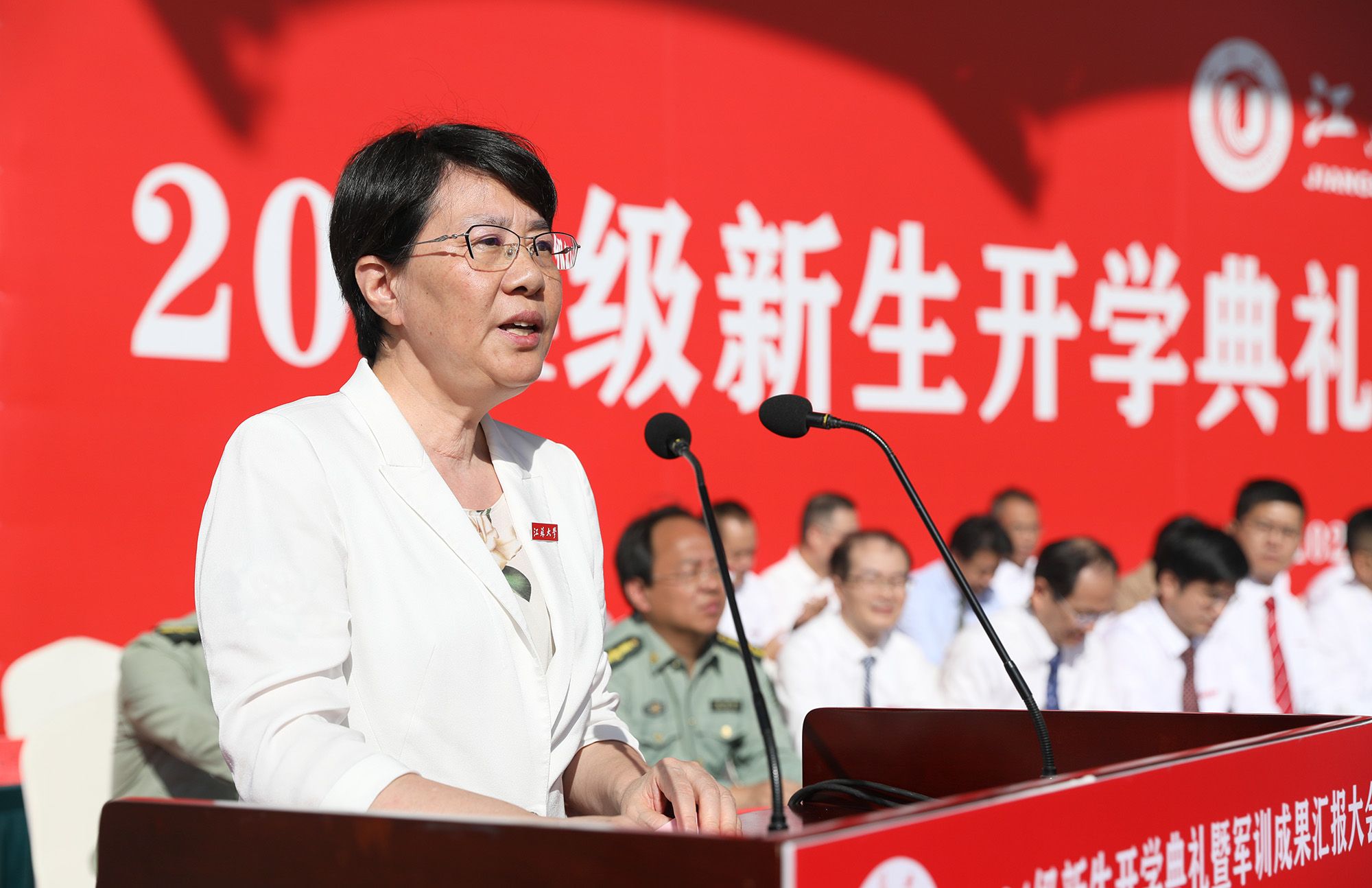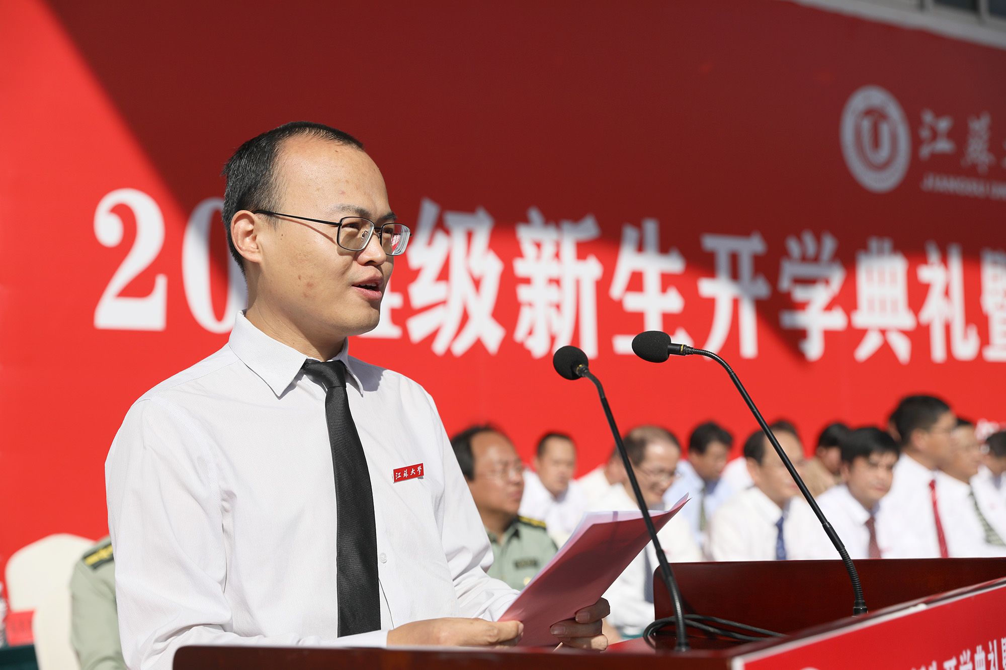校党委常委、副校长任旭东在主持典礼时说,崭新的学习生活已开启,希望同学们接过时代接力棒,传承和发扬江大人的光荣传统,在青春赛道上奋力奔跑、奋勇争先。