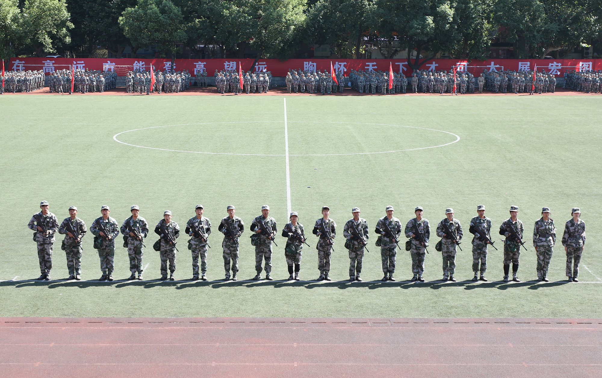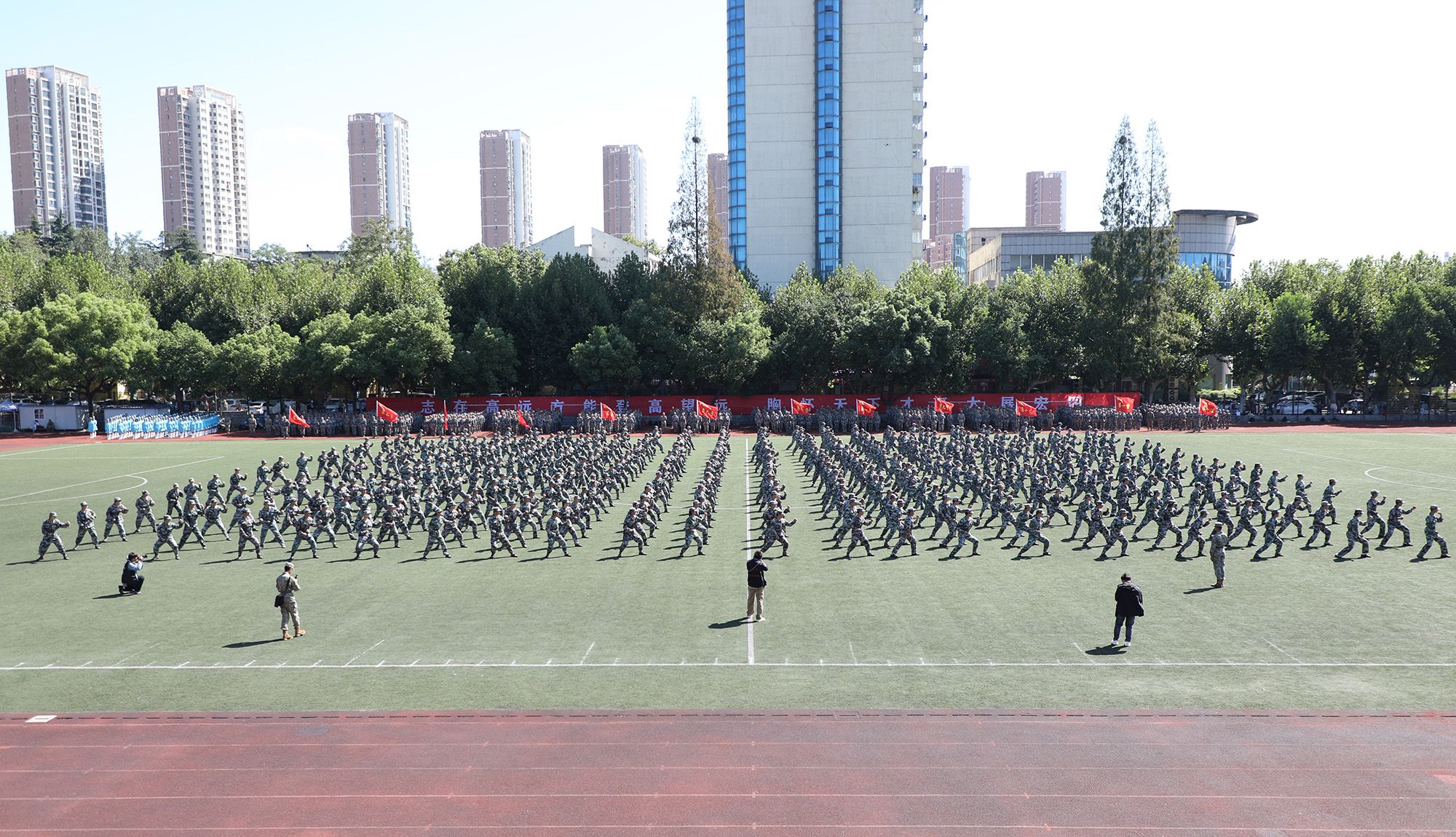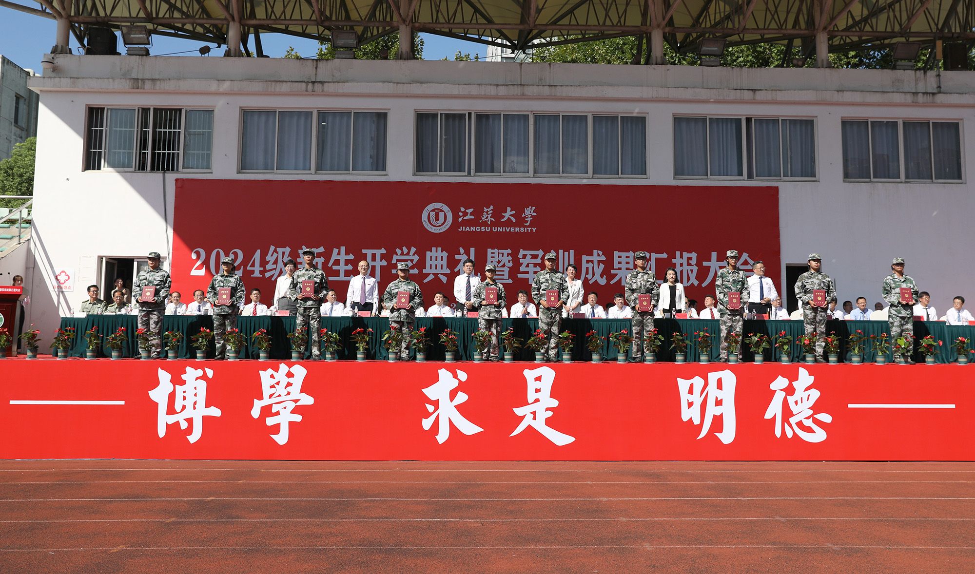 开学典礼后举行了2024级本科生军训成果汇报大会。