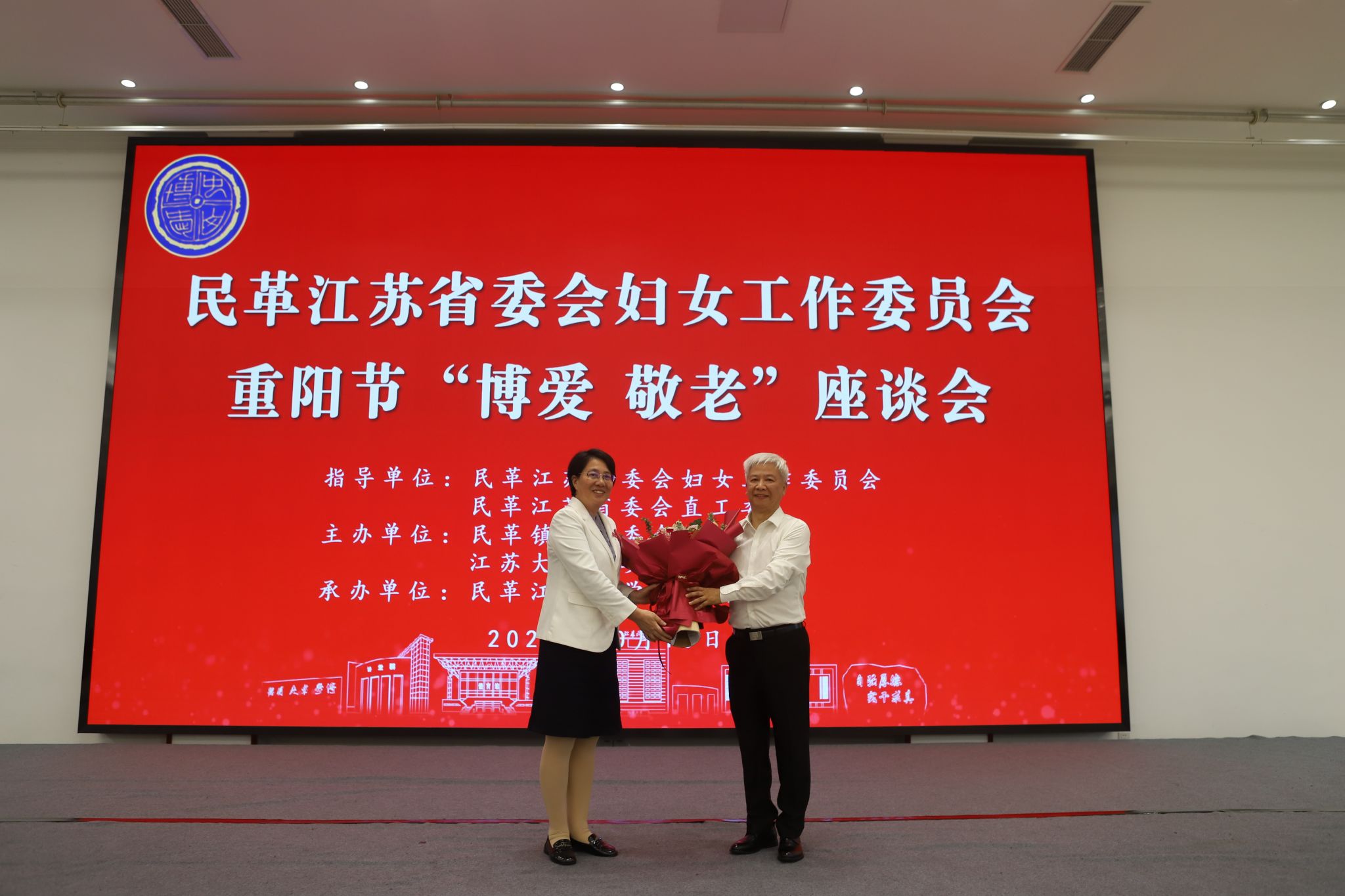 10月10日,民革江苏省委会妇女工作委员会重阳节“博爱 敬老”座谈会在beat365举行。民革江苏省委会副主委、妇女工作委员会主任、校长邢卫红出席会议并讲话。校党委常委、副校长王景全,民革镇江市委会主委王加友出席会议并致辞。民革江苏省委会原副主委、民革镇江市委会原主委、原副校长宋余庆,民革镇江市委会原专职副主委孙英华等老领导、老党员参加会议。