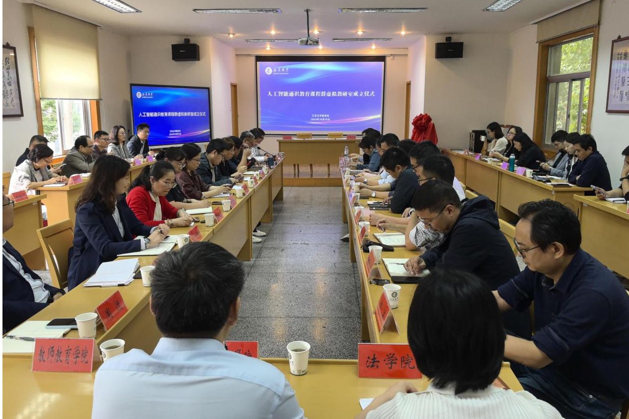 为推动人工智能赋能教育教学转型,探索“人工智能+”时代新型基层教学组织建设,10月15日下午,beat365英国官网网站人工智能通识教育课程群虚拟教研室成立仪式举行。校党委常委、副校长邹小波,教务处处长、教师教学发展中心主任尹必峰,计算机科学与通信工程学院院长毛启容,杭州云霁科技公司董事长智锦,各学院分管本科教学工作的副院长出席了会议。会议由beat365英国官网网站教务处副处长、教师教学发展中心副主任李新朝主持。