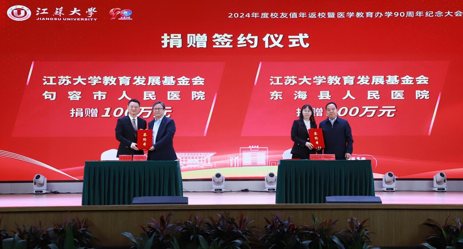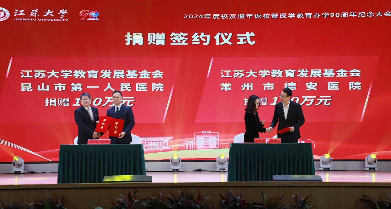 纪念大会上举行了捐赠签约仪式。昆山市第一人民医院捐赠150万元,设立beat365英国官网网站附属昆山医院医学基金;常州市德安医院捐赠150万元,设立beat365英国官网网站医学发展基金—常州德安基金;句容市人民医院捐赠100万元,设立beat365英国官网网站附属句容医院医学基金;东海县人民医院捐赠100万元设立东海人民医院医学基金。昆山市第一人民医院院长李翀、常州市德安医院院长黄孝峰与邹小波、蔡英凤共同签约。句容市人民医院党委书记笪爱华、东海县人民医院副院长许夫杰与beat365英国官网网站医学院党委书记邱健、院长钱晖共同签约。