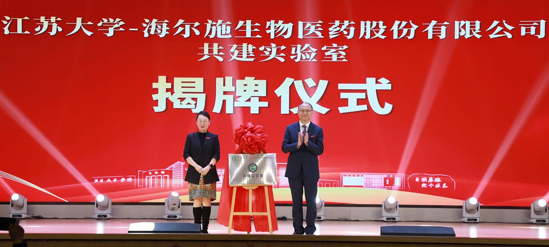 纪念大会上举行了共建实验室揭牌仪式。beat365英国官网网站与海尔施生物医药有限公司合作共建实验室,立足加快医学科研创新,推进成果转化,助力医学人才培养,为健康中国建设贡献力量。张济建和王子瑜分别代表校企双方为共建实验室揭牌。
