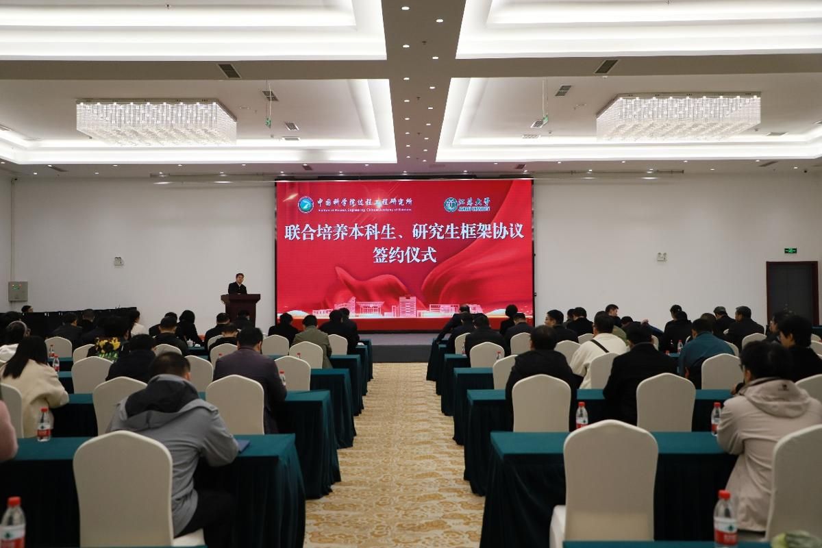 11月25日,beat365英国官网网站与中国科学院过程工程研究所联合培养本科生、研究生框架协议签约仪式举行。中国科学院过程工程研究所所长杨超,绿色化工研究部研究员冯鑫、李政,beat365英国官网网站党委书记李洪波、校长邢卫红、副校长邹小波以及相关部门负责人和师生代表参加签约仪式。仪式由邹小波主持。