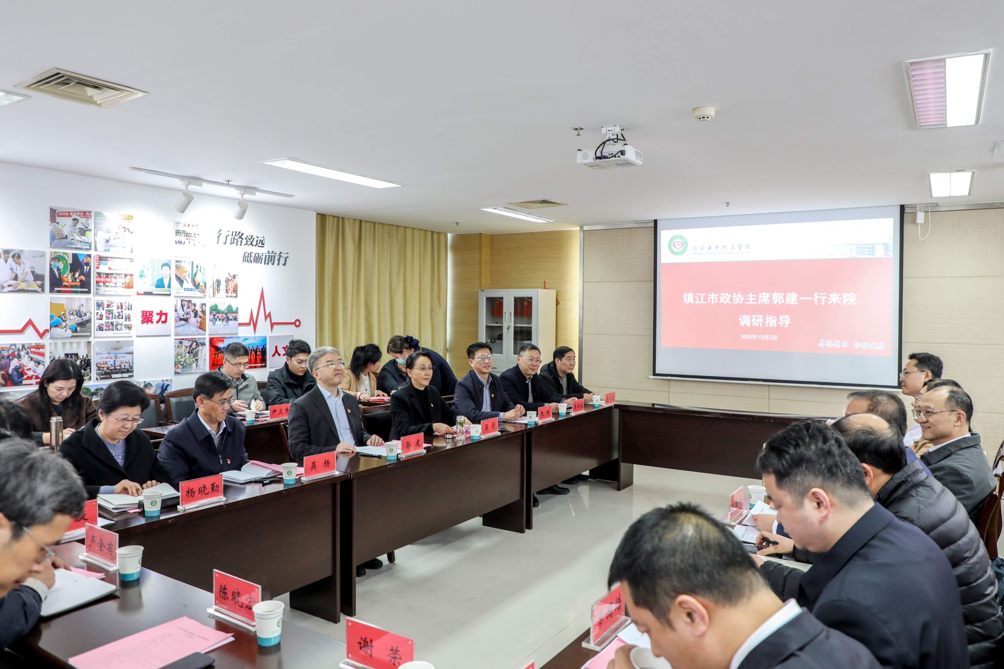 12月2日,镇江市政协主席郭建率调研组到附属医院调研指导,beat365英国官网网站党委副书记、附属医院党委书记张济建陪同调研。附属医院院长陈吉祥主持座谈会。