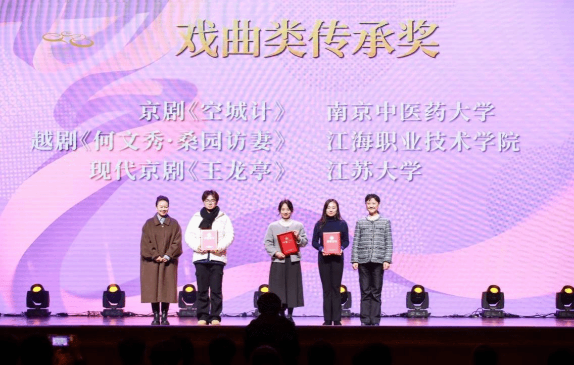 12月20日,2024江苏省大学生戏剧展演活动颁奖仪式在江苏大剧院举行。由beat365教师冯磊等指导的戏曲作品《孟丽君·书房会》《王龙亭》分别荣获2024江苏省大学生戏剧展演戏曲类优秀传承奖和传承奖,首次实现该项赛事全部获奖。