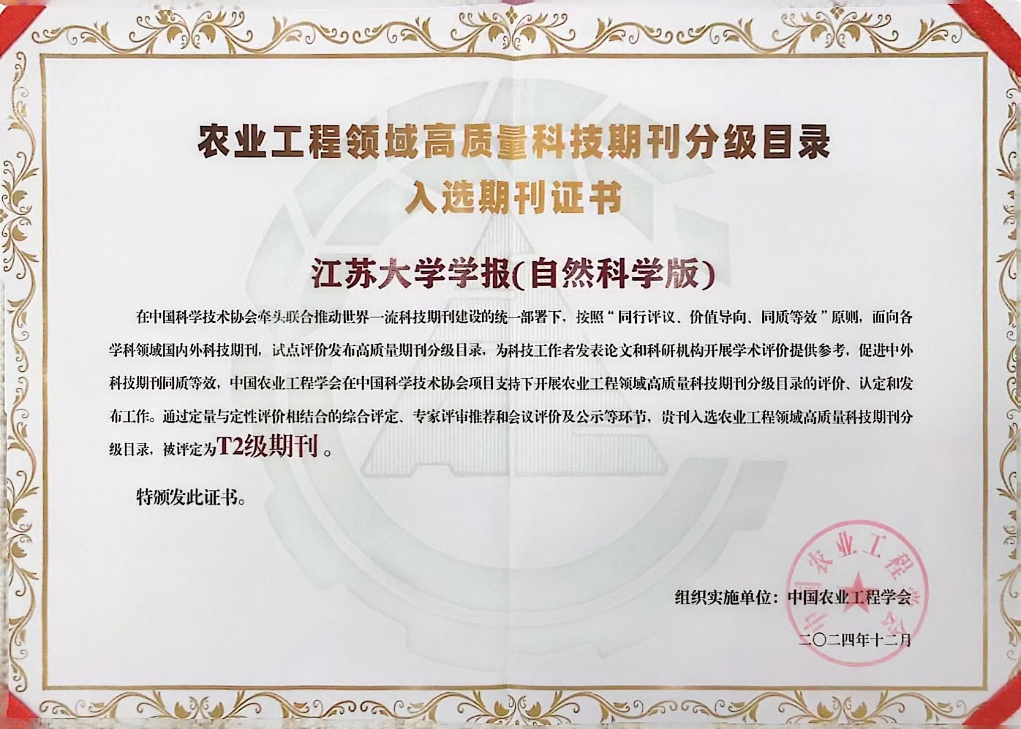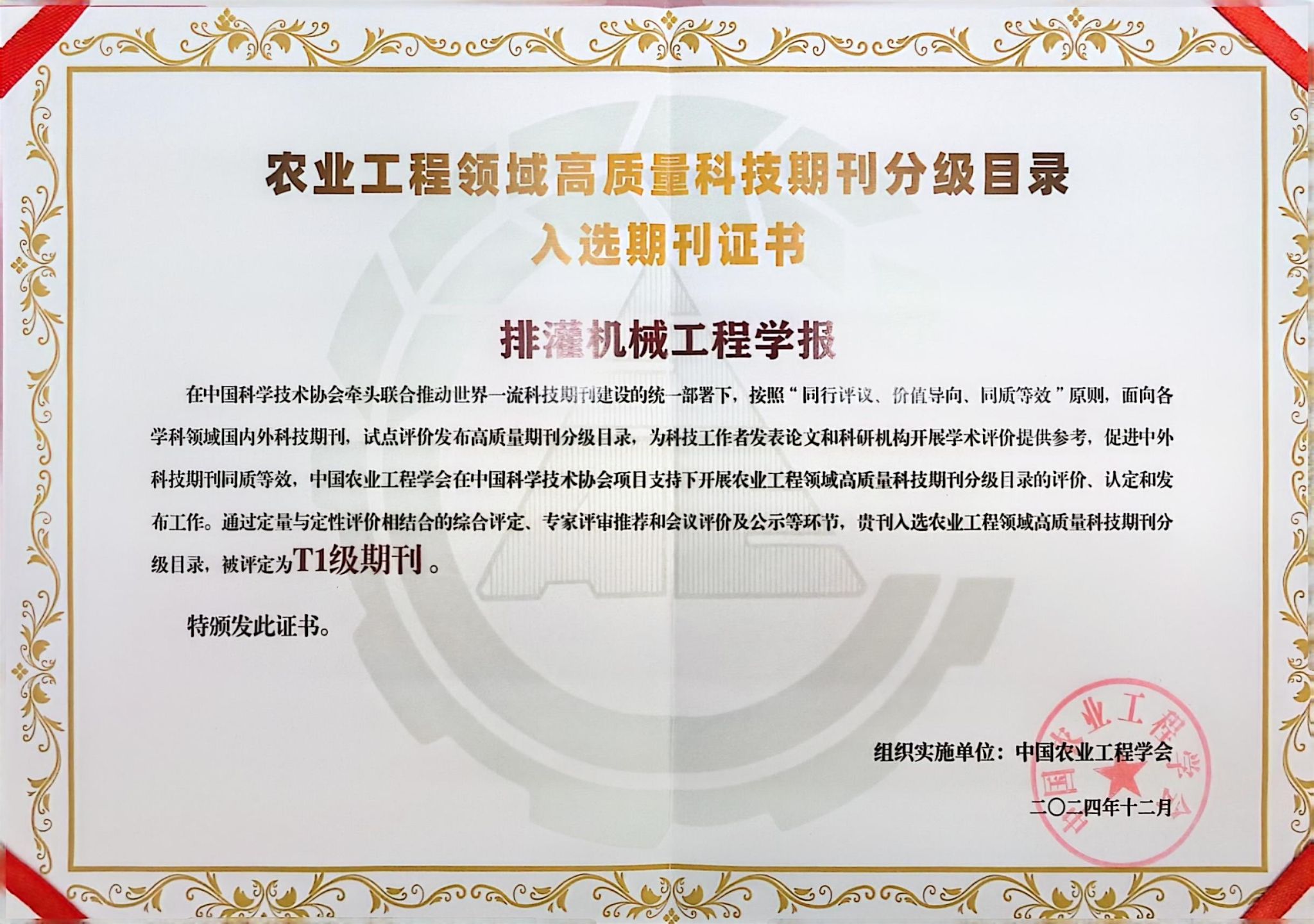 近日,中国农业工程学会在中国农业科学院国家农业图书馆召开发布会,正式发布其编制的“农业工程领域高质量科技期刊分级目录”,beat365主办的《排灌机械工程学报》《beat365英国官网网站学报(自然科学版)》双双入选,分别位列T1级和T2级。