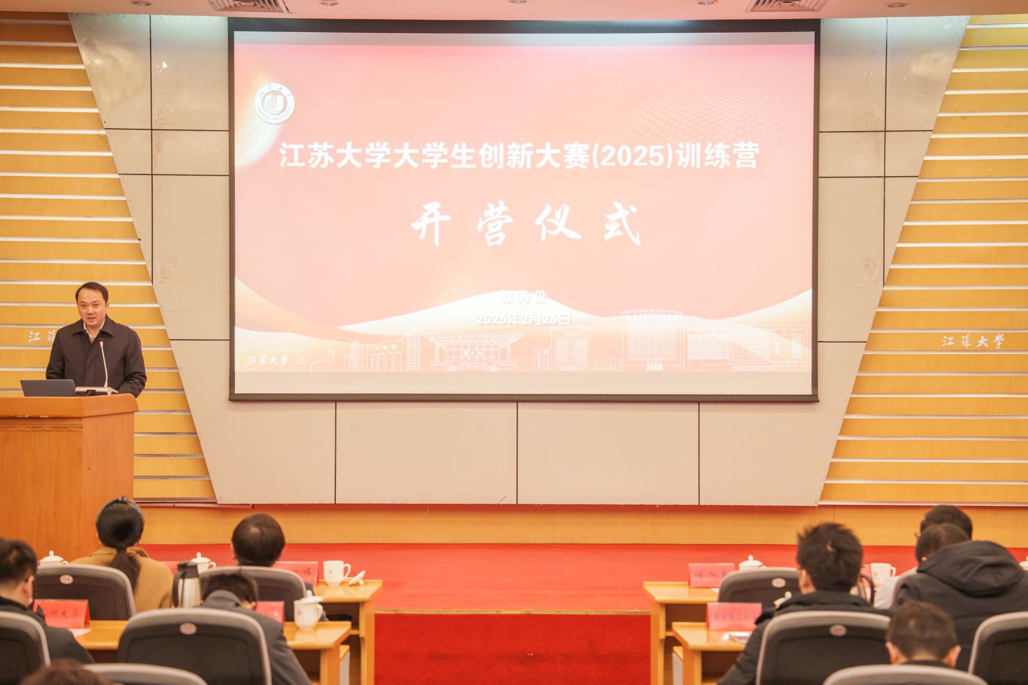 2月26日,beat365英国官网网站大学生创新大赛(2025)训练营开营仪式举行。校党委常委、副校长任旭东,上海星良投资管理有限公司合伙人杨世先、南京理工大学创新创业学院副院长赵茜及项目团队成员、南京农业大学教务处副处长祖海珍及项目团队成员、南京林业大学创新创业学院副院长刘兴光及项目团队成员、常州大学项目团队成员等出席仪式。教务处、学工处、研究生院、团委等单位负责人,各学院师生代表、参赛团队等线上线下700余人参加仪式。