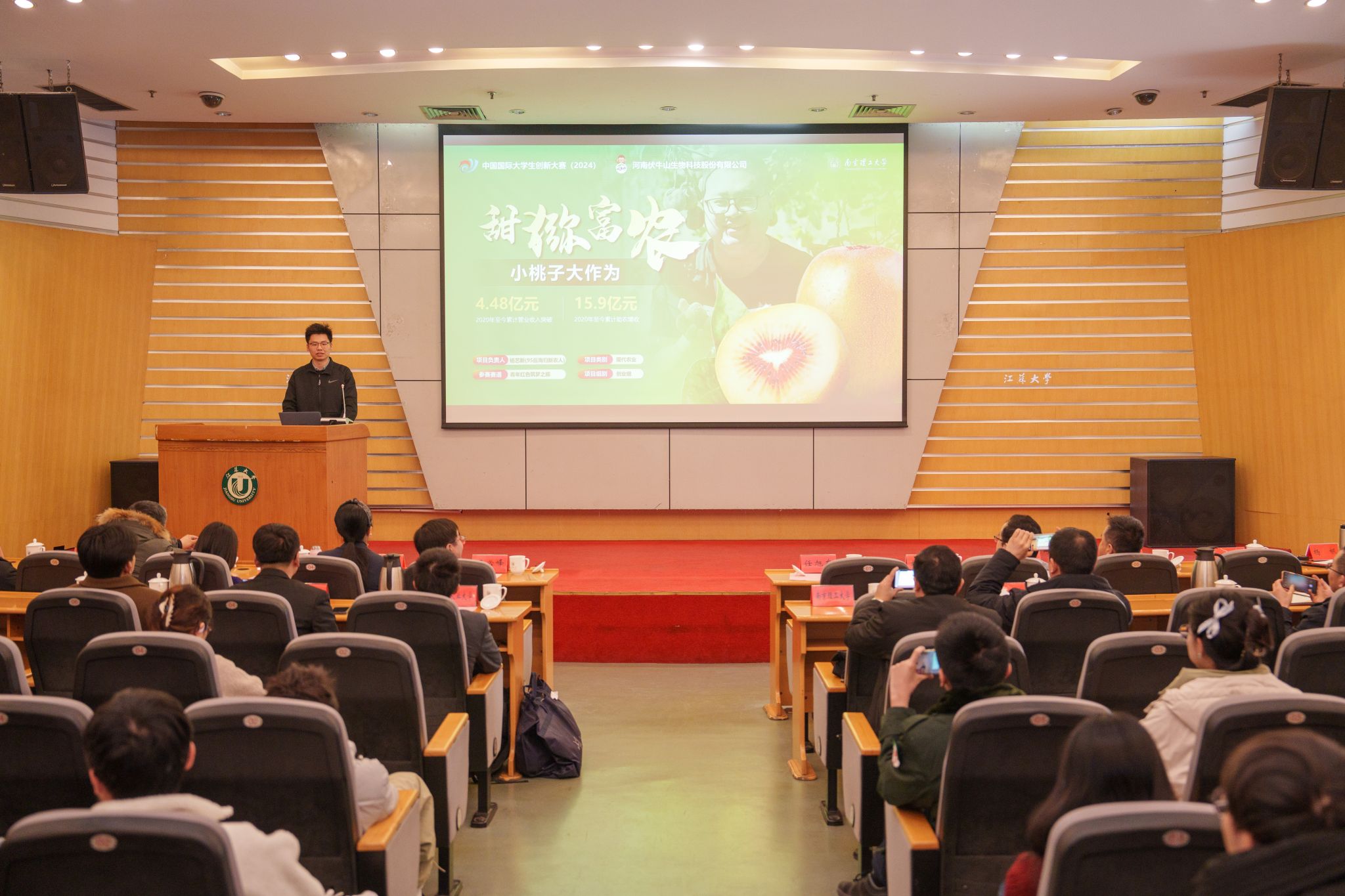 仪式上,南京理工大学《小桃子大作为》、南京农业大学《益农稻——乡村振兴“稻”路的引领者》、常州大学《储能卫士——智能热管理材料助力国家能源转型》、南京林业大学《高热耗能工业园区生物质固碳能源热效率提升方案》等2024年中国国际大学生创新大赛国赛金奖项目进行示范路演。项目立足国家战略需求,突破行业技术瓶颈,为beat365师生提供了可借鉴的“敢闯会创”实践范本。