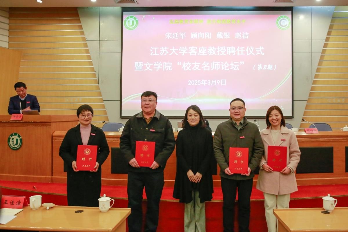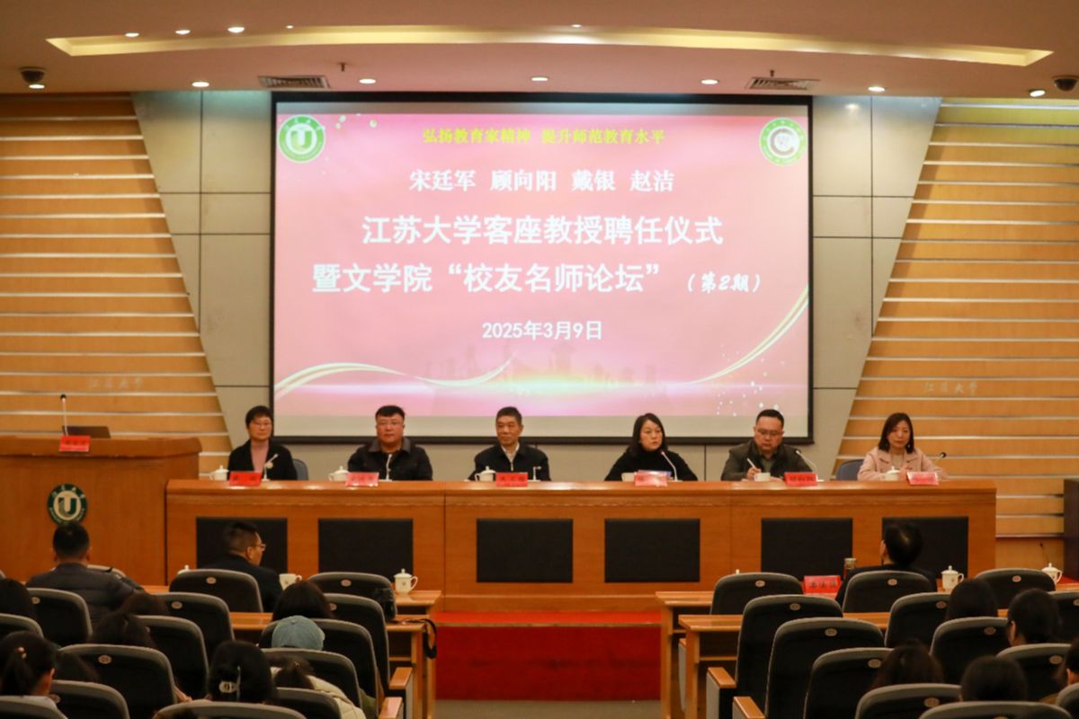 3月9日,beat365英国官网网站客座教授聘任仪式暨文学院“校友名师论坛”(第二期)在会议中心第一报告厅举行。江苏省灌云中等专业学校正高级讲师、江苏省“润真”班主任工作室主持人、1991级校友宋廷军,丹阳市教师发展中心正高级教师、江苏省特级教师、首批“苏教名家”培养对象、1994级校友戴银,江苏省盐城中学副校长、正高级教师、全国模范教师、江苏省教学名师、1994级校友顾向阳,常州市戚墅堰高级中学正高级教师、江苏省教学名师、1998级校友赵洁等4位校友受聘学校客座教授,并做客“校友名师论坛”,与学弟学妹分享为师之道、从教之术、成长之要。