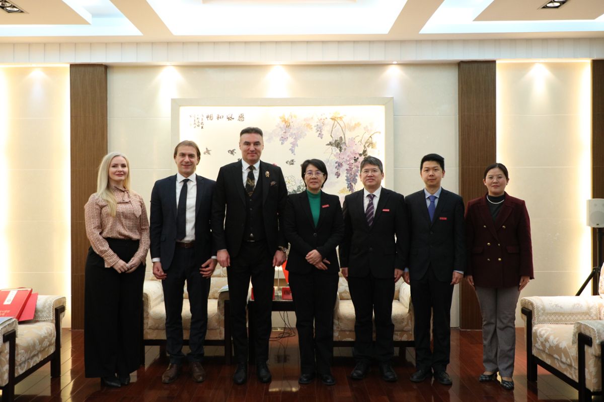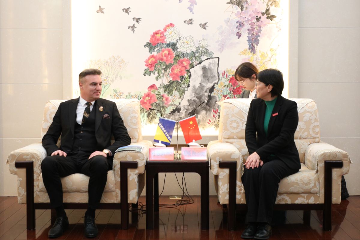 3月31日,波黑驻华大使西尼沙·贝尔扬、波黑东萨拉热窝大学副校长马尔科·古塔尔吉访问beat365。校长邢卫红,党委常委、副校长邹小波会见来访一行,国际合作与交流处负责人、beat365波黑籍教师代表陪同。