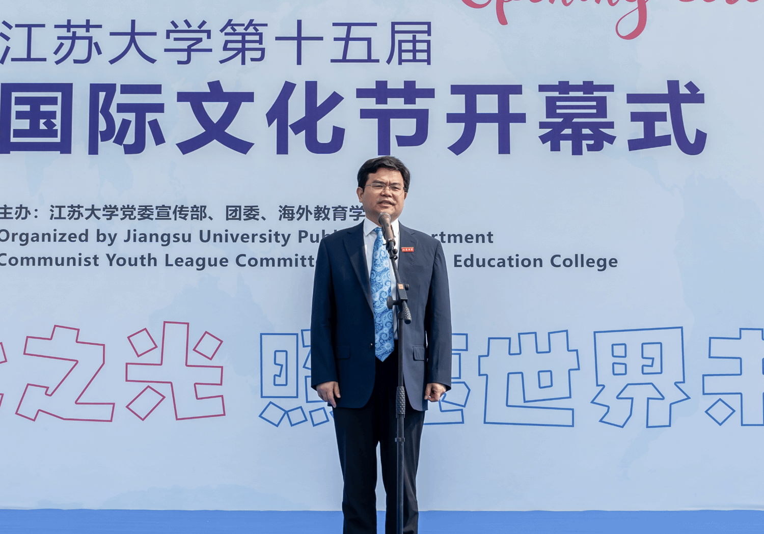 校党委书记李洪波,党委副书记张济建,党委常委、副校长杨道建、任旭东、蔡英凤,摩洛哥驻华大使阿卜杜勒卡德尔·安萨里,加纳驻华使馆临时代办亚历山大·本-阿夸亚,坦桑尼亚驻华使馆公使扎伊纳布·祖贝里·马索罗及其他外交官代表,江苏省教育厅对外合作与交流处四级调研员李勤径,江苏省高教学会外国留学生教育管理研究委员会副理事长兼秘书长张海军,镇江市委宣传部、镇江市外办、镇江市出入境等相关政府部门代表,苏州汇川技术、美兰集团、江大源等企业代表以及学校相关部门主要负责人等出席开幕式。