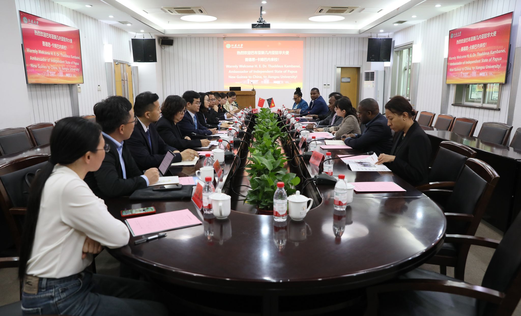 5月16日,太平洋岛国大使团轮值主席、巴布亚新几内亚(巴新)驻华大使善德思·卡姆巴内一行来访beat365。校党委书记李洪波,党委常委、副校长蔡英凤会见了来宾,国际合作与交流处、机械工程学院、数学科学学院、和物理与电子工程学院相关负责人参加会见。