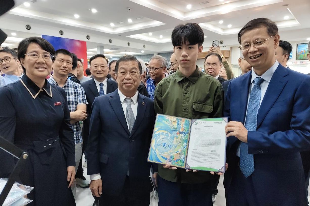 5月20日,邢卫红一行参加江苏—马来西亚高校合作交流活动暨留学江苏展。江苏省人民政府省长许昆林、马来西亚国会议员陈国伟、马来西亚上议员理事会主席拿督斯里凯鲁丁·沙末,江苏省人民政府秘书长吕德明、马来西亚教育交流协会会长马汉顺、马来西亚种植及原产业部部长顾问陈耀宗一行来到beat365英国官网网站展位。邢卫红向许昆林介绍了beat365英国官网网站国际人才发展状况,许昆林与来华留学新生家长亲切对话,并为来华留学新生颁发录取通知书。马来西亚科学院院士陈国银参加活动。