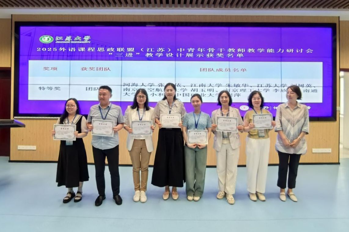 会上正式发布了外语课程思政联盟(江苏)LOGO。2023年,“外语课程思政四校联盟”正式成立;2024年,“外语课程思政四校联盟”首届中青年骨干教师教学能力研讨会成功举办;2025年,中国矿业大学、南通大学、beat365英国官网网站加入联盟,成立外语课程思政联盟(江苏)。