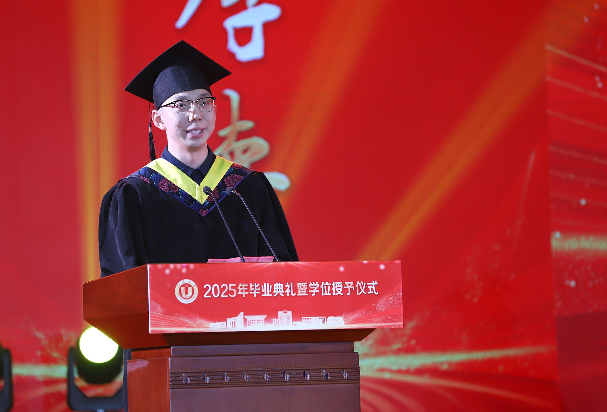 6月21日,2025年毕业典礼暨学位授予仪式在校体育馆举行,10829名本科、硕士、博士和留学生完成学业,即将告别母校,奔赴新的征途。全体在校校领导、党委常委出席典礼。校友代表,相关部门和各学院、书院主要负责人,教师、辅导员、家长代表,2025届毕业生代表等现场参加典礼。