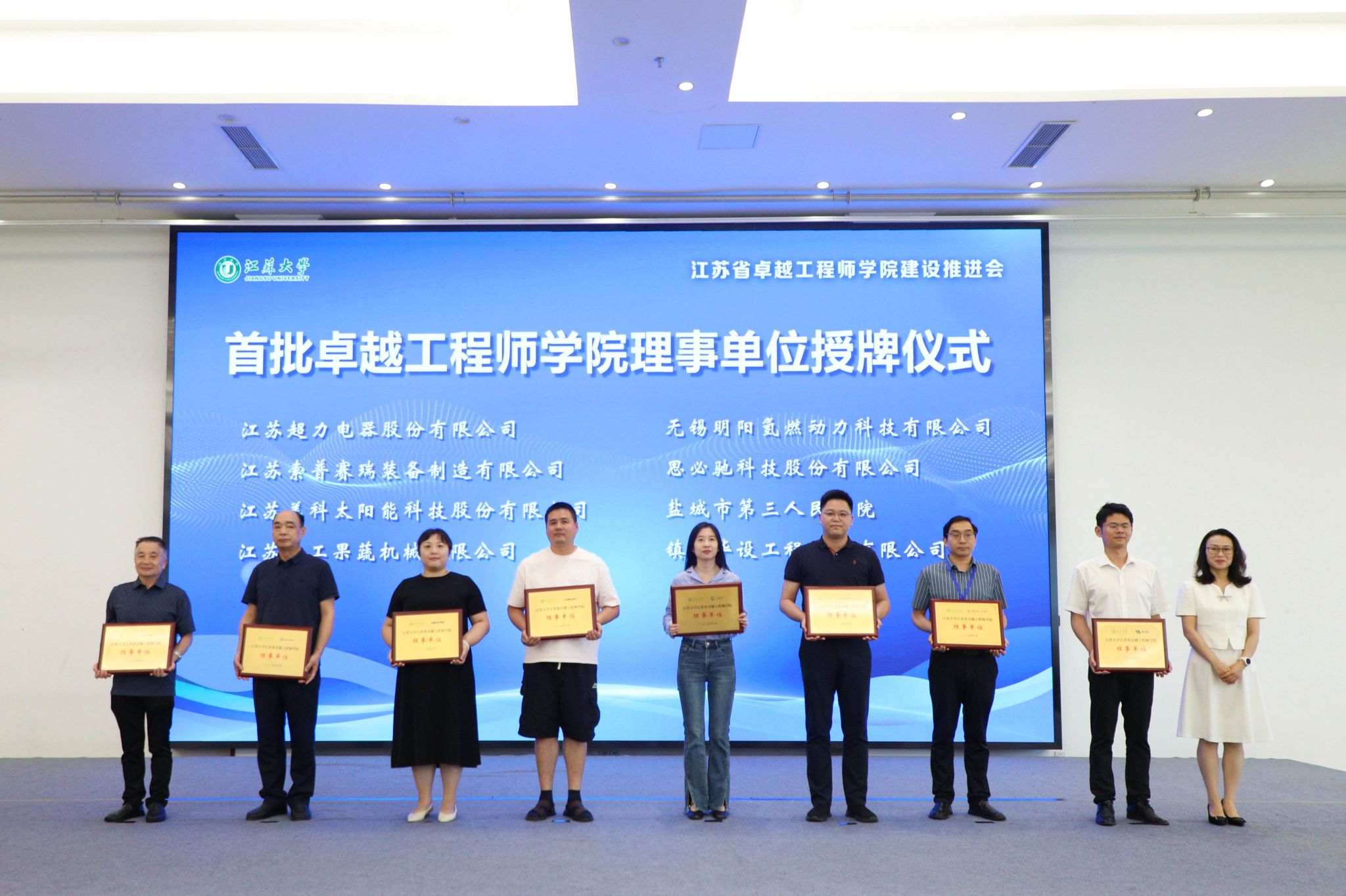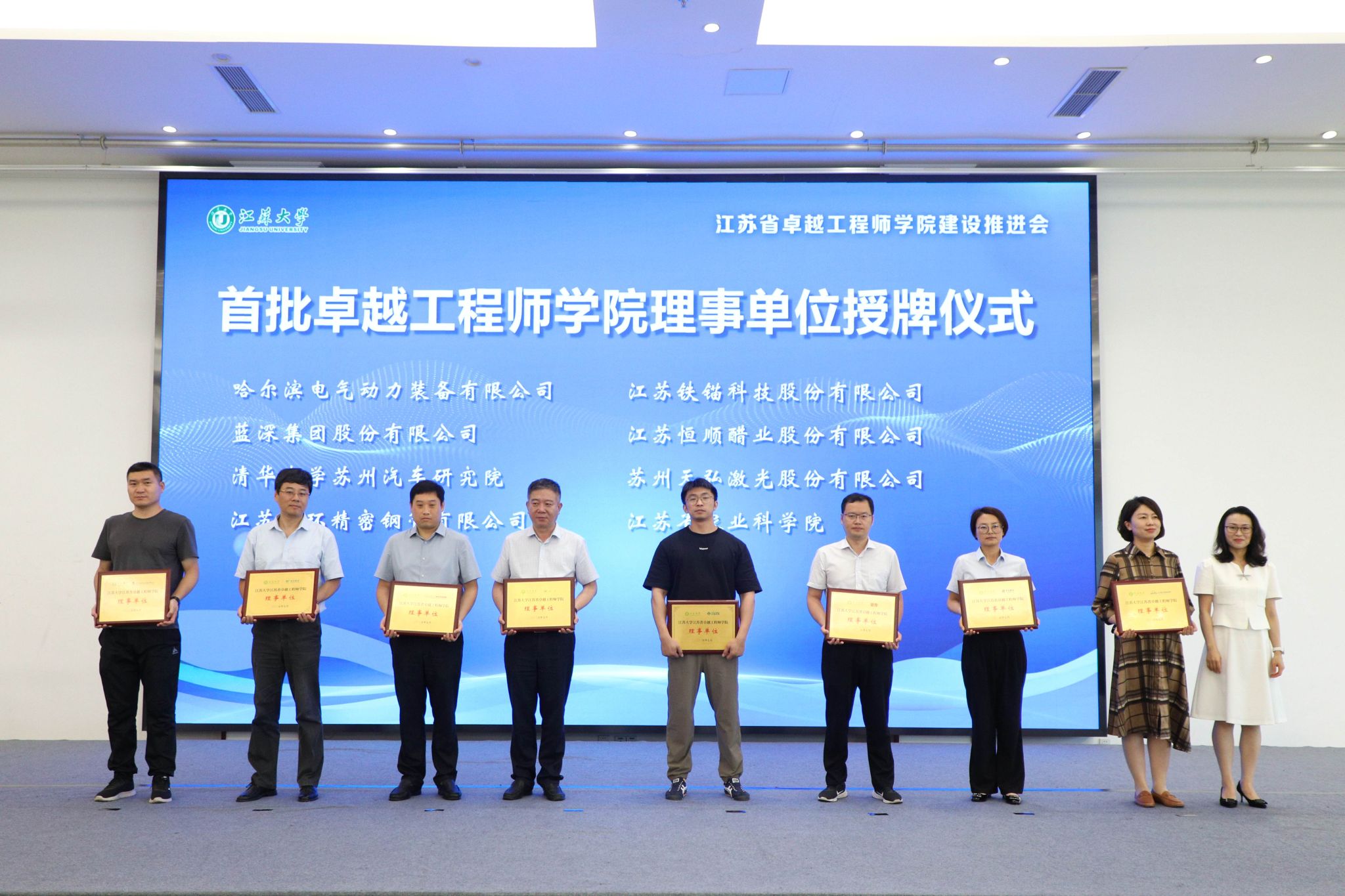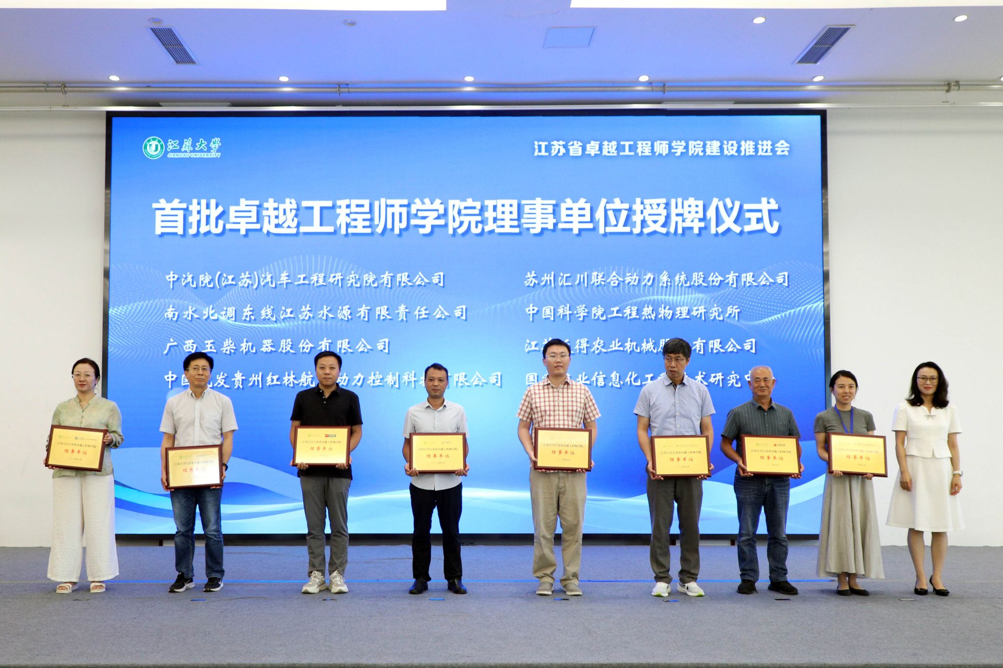 7月3日,beat365英国官网网站江苏省卓越工程师学院建设推进会暨理事会成立会举行。副校长、研究生院院长、卓越工程师学院院长蔡英凤,中汽院(江苏)汽车工程研究院有限公司、国家农业信息化工程技术研究中心、南水北调东线江苏水源有限责任公司、中国科学院工程热物理研究所、广西玉柴机器股份有限公司、中国航发贵州红林航空动力控制科技有限公司、江苏省农业科学院、苏州汇川联合动力系统股份有限公司、江苏沃得农业机械股份有限公司、蓝深集团股份有限公司等30多家央国企和民企单位代表、19家卓工项目建设团队的校内外负责人,人事处、教务处、科技处、产学研处、学工处、各学院主要负责人等100余人出席会议。会议由研究生院常务副院长、卓越工程师学院执行院长朱孝勇主持。