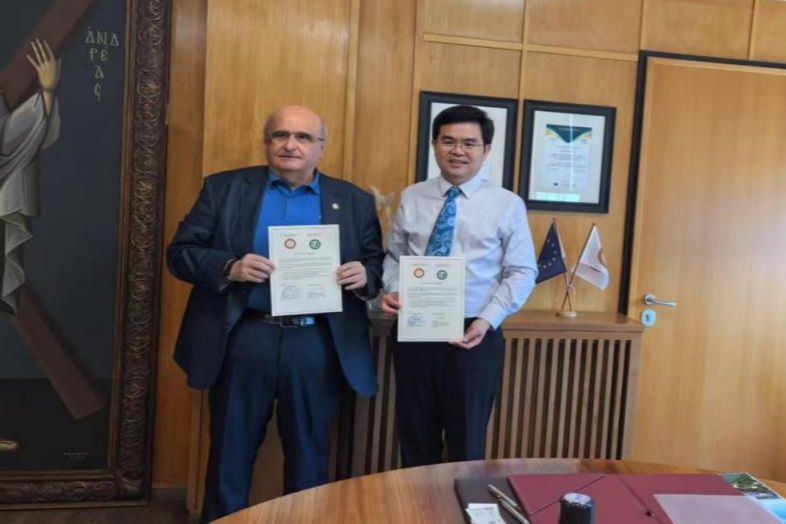 6月23日,代表团首站访问希腊帕特雷大学(University of Patras),与校长克里斯托斯•布拉斯(Christos Bouras)、学术与国际事务副校长迪奥尼修斯•曼察维诺斯(Dionissios Mantzavinos)举行会谈。双方正式签署合作意向书,致力于创建“一带一路”智慧农业技术与装备国际联合实验室,同步启动学生互换交流与境外办学项目,标志着中希高校合作迈入深度融合新阶段。当日,代表团还拜访了历史悠久的希腊雅典科学院,美国国家工程院院士、希腊科学院院士、希腊雅典国立技术大学化学工程教授Doros Nicolas Theodorou等热情接待。双方就开拓科技合作渠道、促进beat365英国官网网站与希腊雅典科学院开展技术交流、高层次人才引进与输出达成共识。