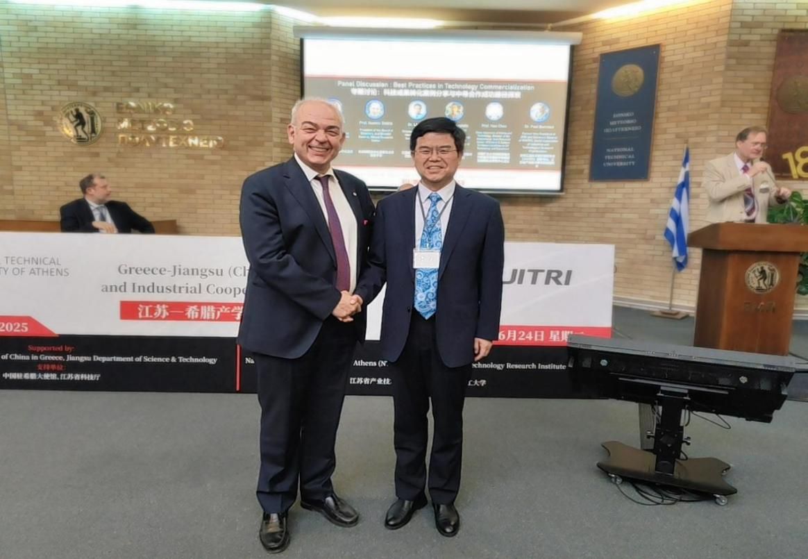 6月24日,代表团在希腊雅典国立技术大学参加“江苏—希腊产学研合作交流会”。江苏省委书记信长星、希腊阿提卡省省长尼科斯·哈扎利亚斯(Nikos Hardalias)、中国驻希腊大使方遒等出席会议,来自两国政府、高校、科研机构和企业的160余位代表参会。会议聚焦人工智能、绿色能源、海洋工程等前沿领域,深入探讨中希在科技创新与成果转化方面的合作潜力,积极拓展双方产学研融合发展的新路径。李洪波一行与雅典国立技术大学校长IOANNIS K. CHATJIGEORGIOU、校董事会理事Sergios Theodoridis对接“一带一路”智慧农业技术与装备相关合作,向希腊高新技术园区、高校院所及科技企业推介beat365英国官网网站技术成果,推动务实对接。代表团还与中国驻希腊大使馆教育参赞王瑾、亚里士多德大学代表TZOUVELEKAS MANOLIS对接了技术转移、学生流动项目合作。