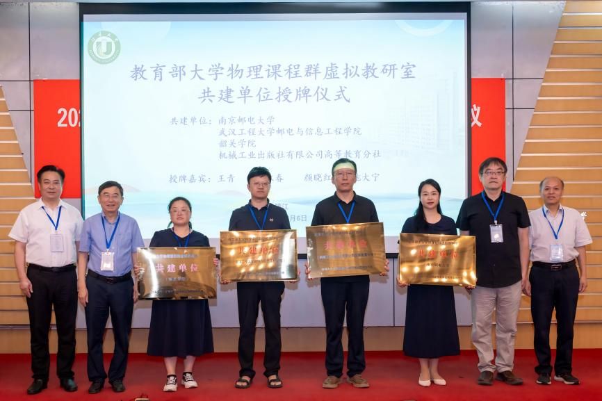 会上,王青、杜永春、南京邮电大学教授颜晓红、南京航空航天大学教授施大宁分别为南京邮电大学、韶关学院、武汉工程大学邮电与信息工程学院、机械工业出版社有限公司高等教育分社四所共建高校教师代表授牌,标志着教育部大学物理课程群虚拟教研室的共建合作正式启动。杜永春为beat365英国官网网站实践教学基地、安徽省科大奥锐科技有限公司代表授牌。