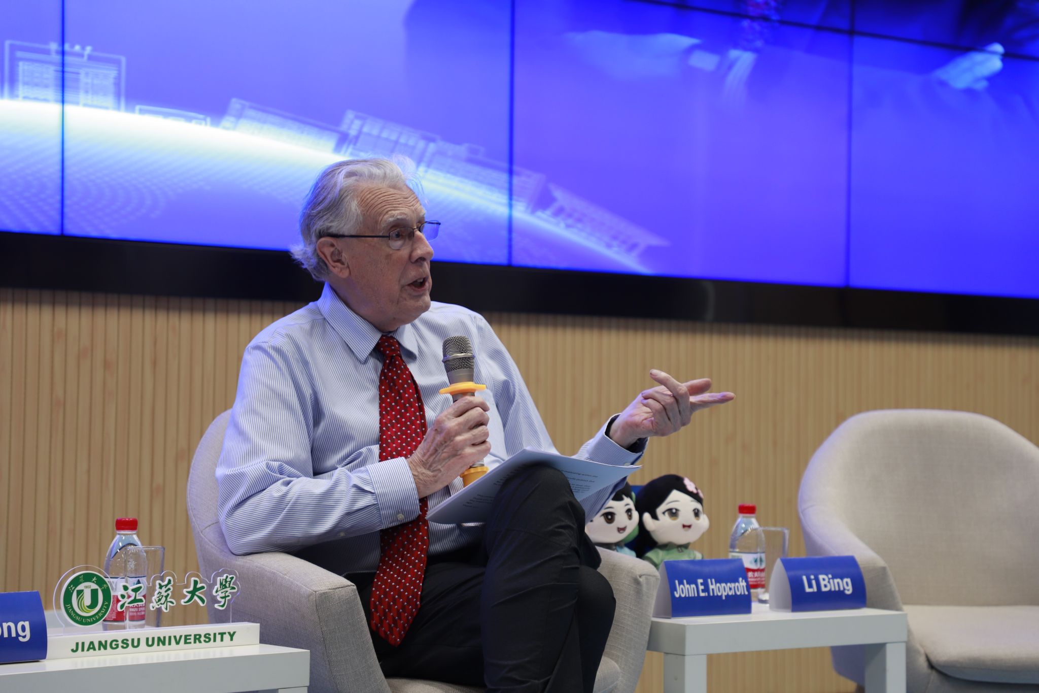 图灵奖获得者约翰·爱德华·霍普克罗夫特院士对话会在主A楼远程互动教室举行。校长邢卫红,党委常委、副校长邹小波,相关部门和学院师生代表等参加对话会。