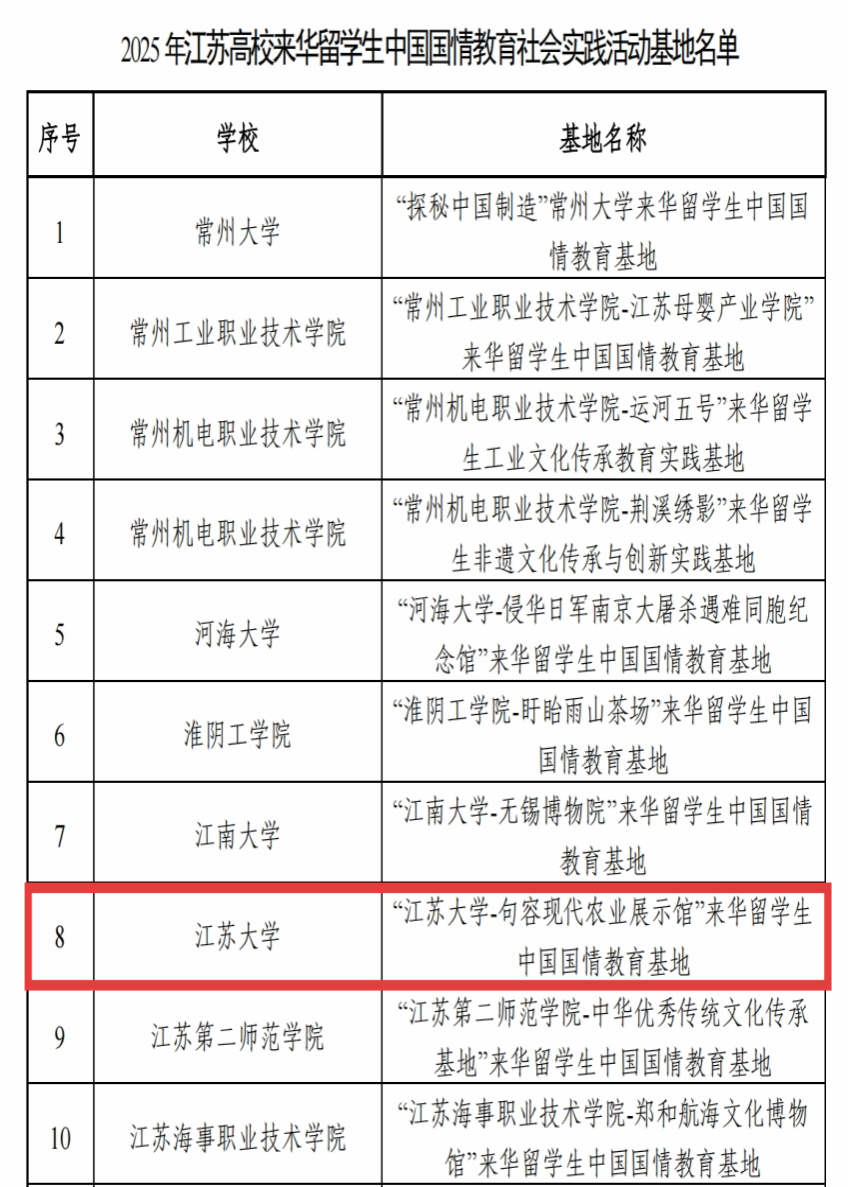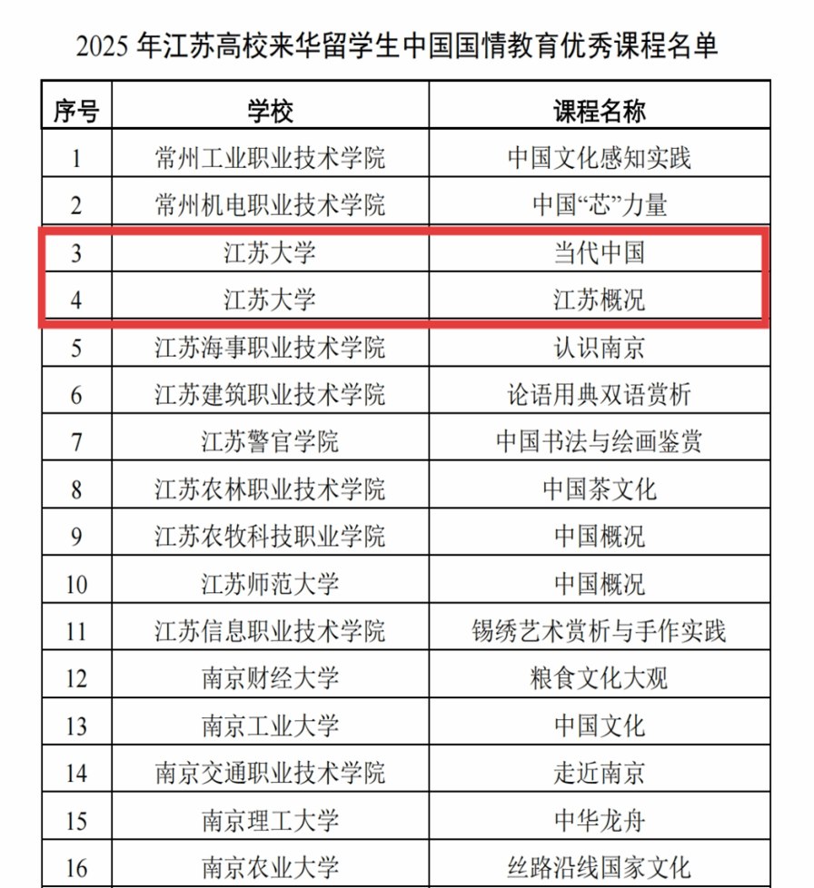 近日,江苏省高等教育学会外国留学生教育管理研究委员会公布了“2025年江苏高校来华留学生中国国情教育优秀课程”和“社会实践活动基地”名单。beat365遴选报送的“当代中国”“江苏概况”两门课程双双入选“优秀课程”,“句容现代农业展示馆”入选“社会实践活动基地”。