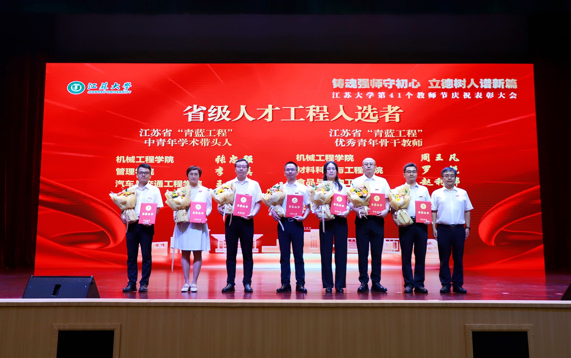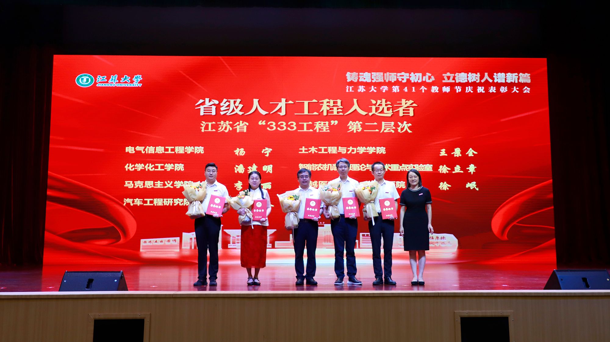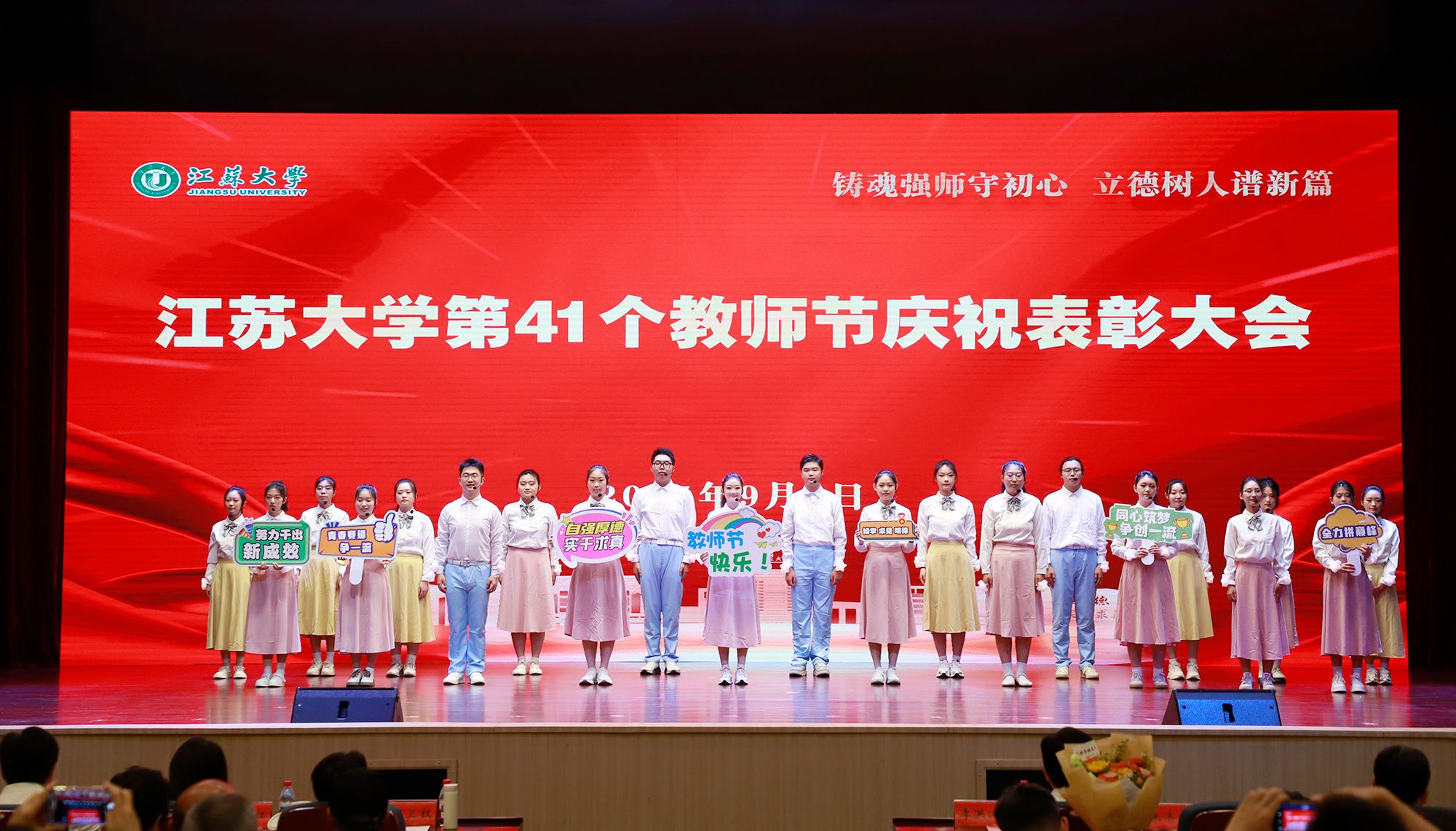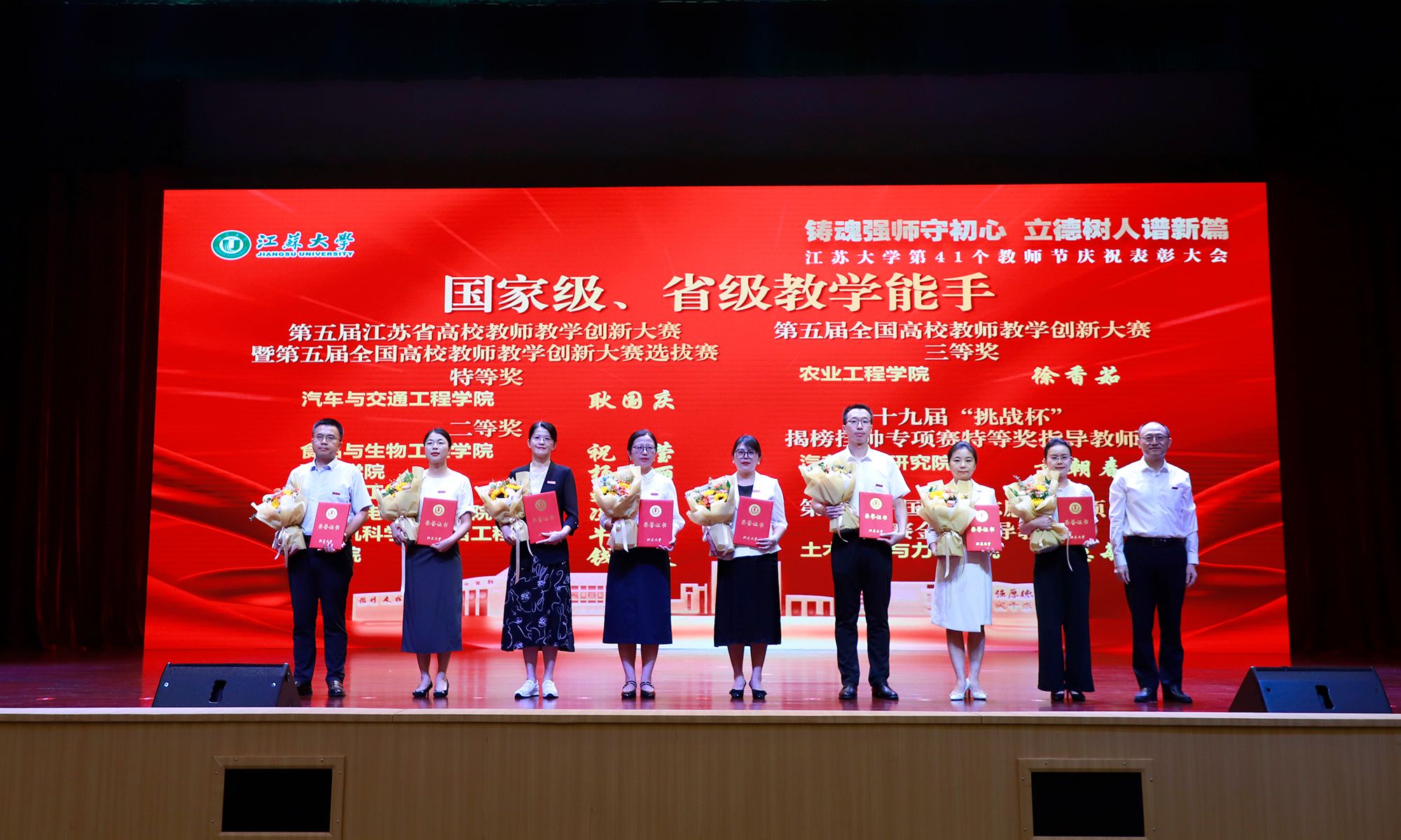 9月8日,学校举行第41个教师节庆祝表彰大会,贯彻全国教育大会精神,进一步营造尊师重教、尊重人才的良好氛围。校党委书记李洪波,校长邢卫红,校党委副书记张济建,副校长陈红,校党委常委、副校长邹小波,校党委常委、副校长王景全,校党委常委、纪委书记、派驻监察专员杜永春,校党委常委、组织部部长杨敬江,校党委常委、宣传部部长、统战部部长吴麟麟等出席大会。张济建主持大会。