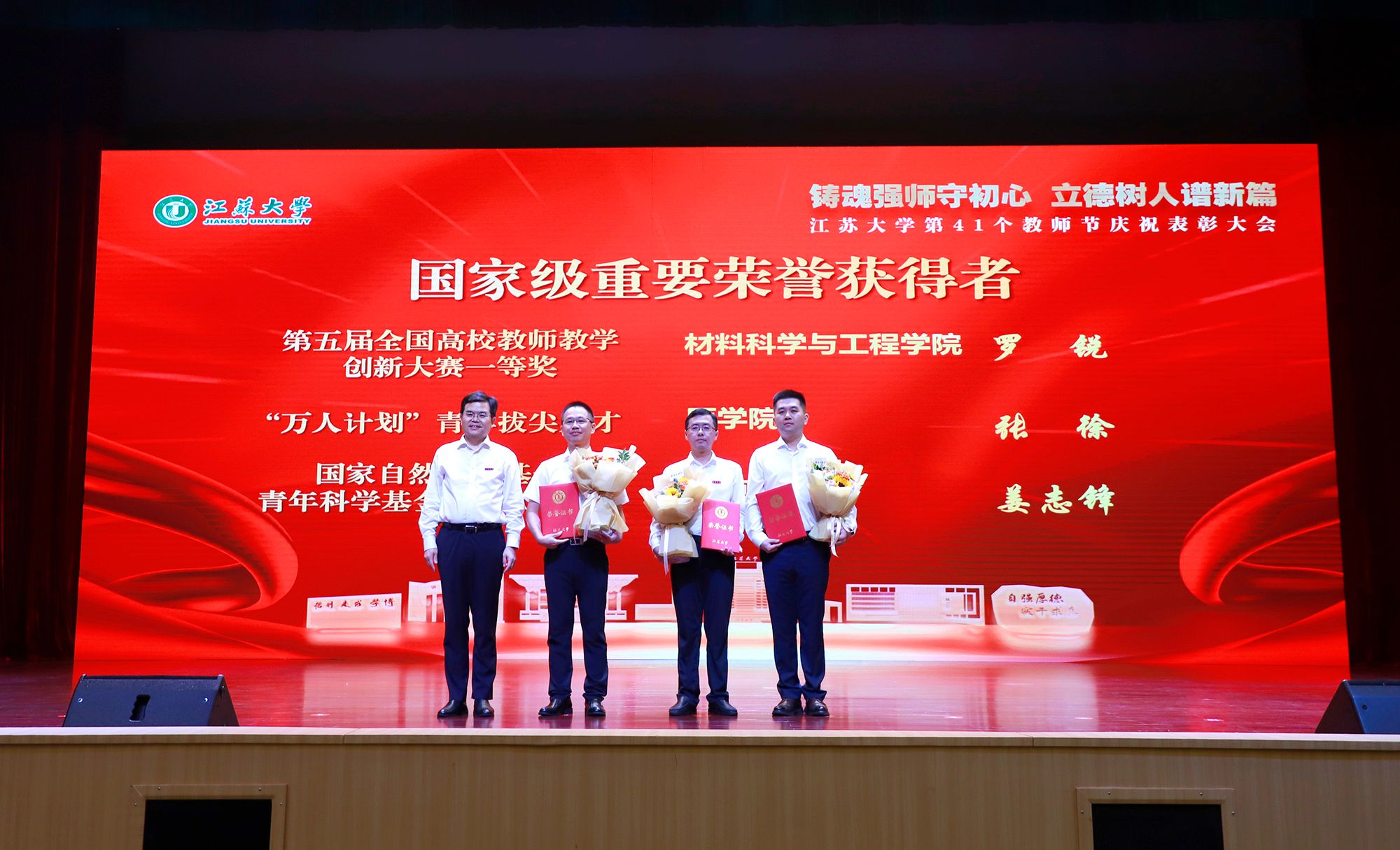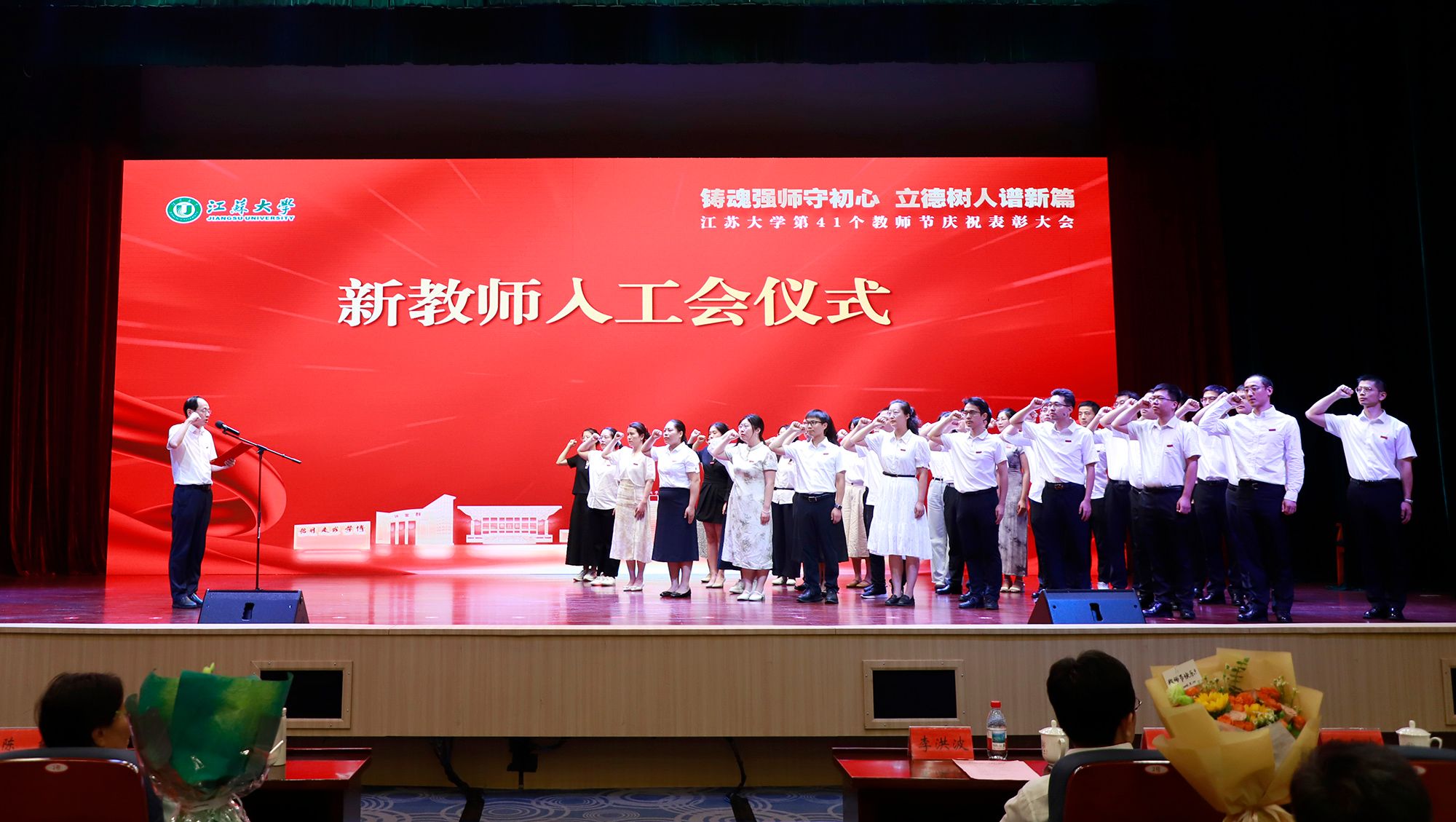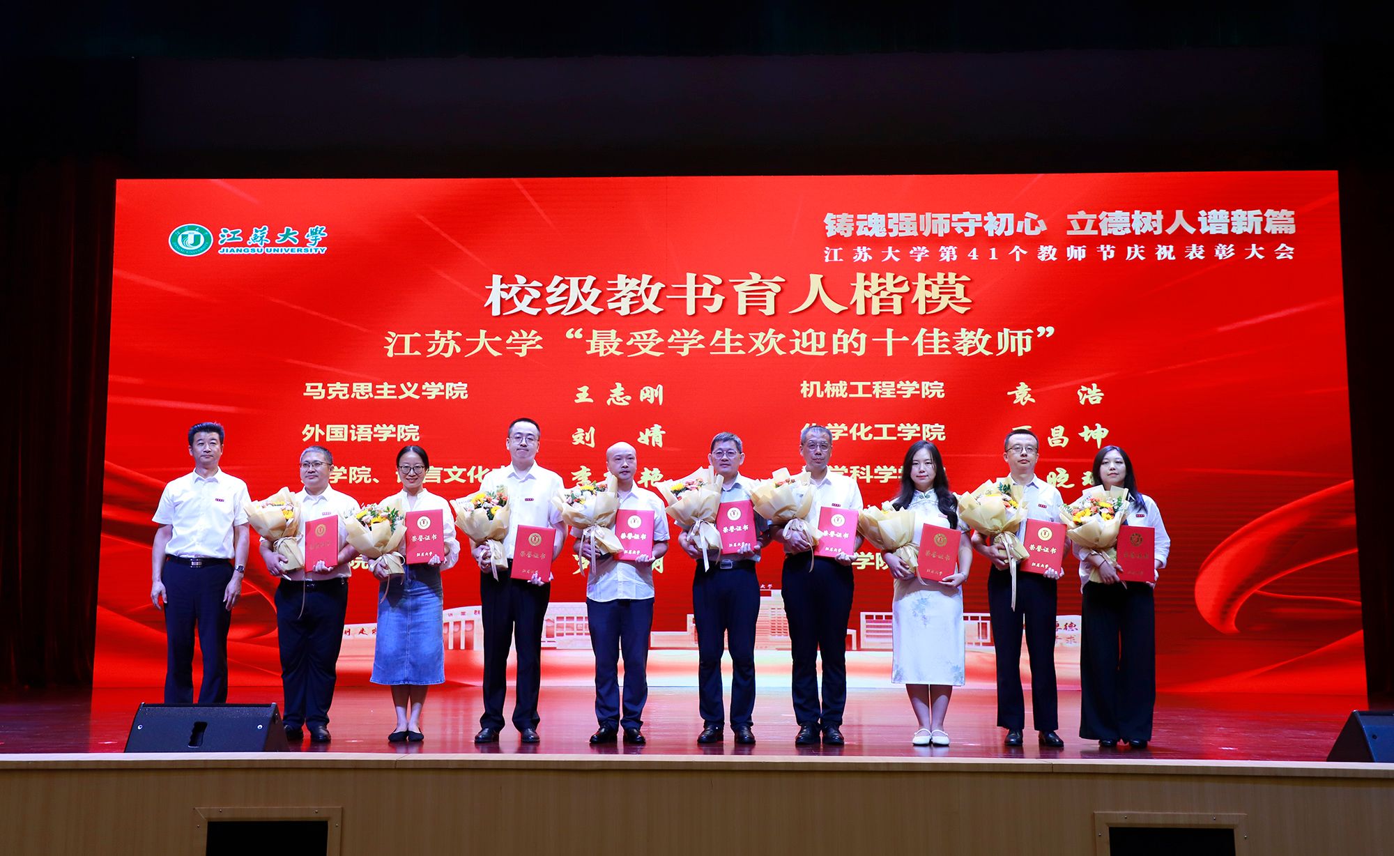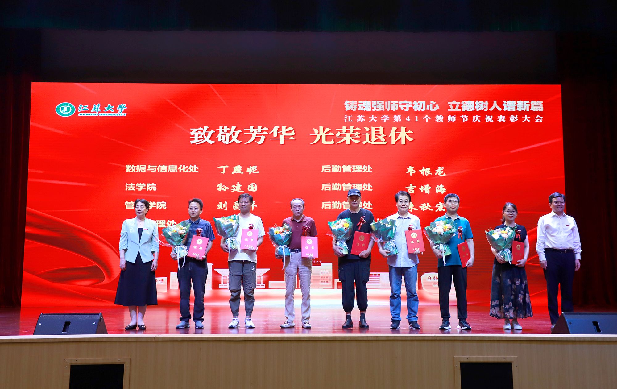 9月8日,学校举行第41个教师节庆祝表彰大会,贯彻全国教育大会精神,进一步营造尊师重教、尊重人才的良好氛围。校党委书记李洪波,校长邢卫红,校党委副书记张济建,副校长陈红,校党委常委、副校长邹小波,校党委常委、副校长王景全,校党委常委、纪委书记、派驻监察专员杜永春,校党委常委、组织部部长杨敬江,校党委常委、宣传部部长、统战部部长吴麟麟等出席大会。张济建主持大会。